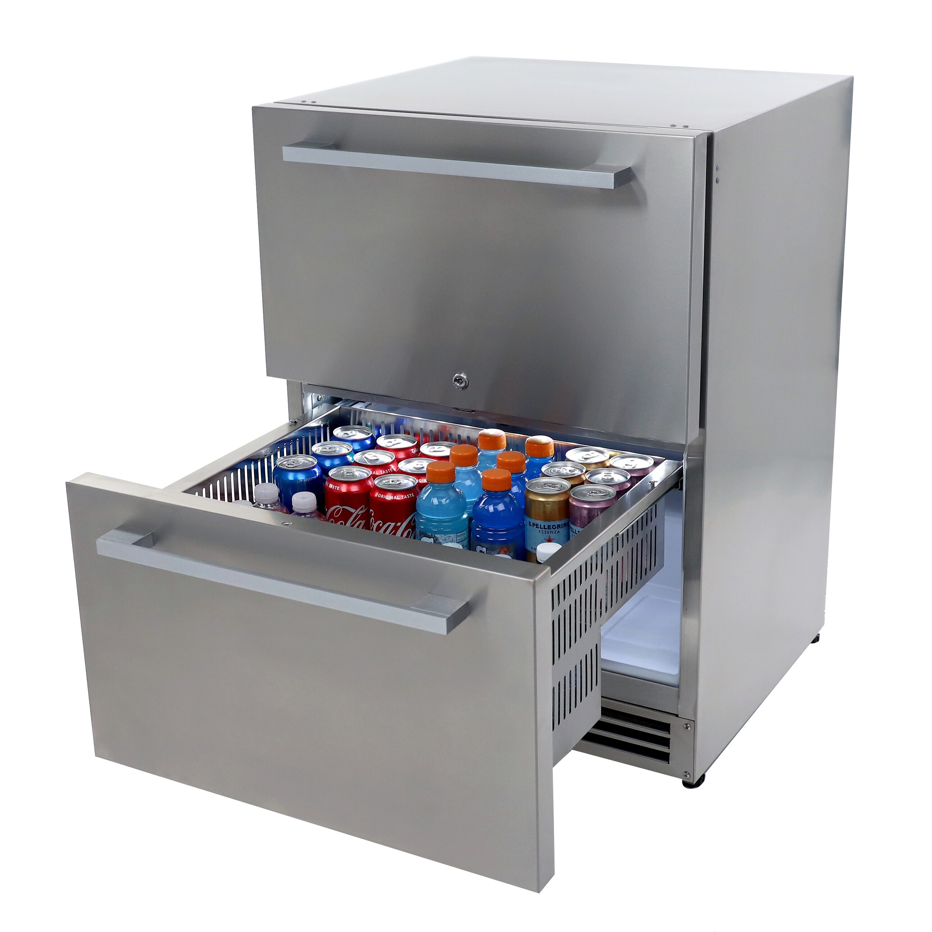 Want quick access to ingredients for meal prep and entertaining? The Avanti ELITE Series Undercounter Refrigerator makes it easy to organize food and drinks for cooking, dinner events and casual snacking. Designed for indoor and outdoor kitchens, our two drawer fridge is sized 33 1/2″ high and fits under countertops or sits upright for freestanding use. Constructed from durable 304 stainless steel, this sleek undercounter refrigerator looks modern in all kitchens and won’t rust when installed in outdoor bars or patios. Two extendable drawers boast 5.2 cu. ft. of storage and slide out effortlessly. Electronic temperature control makes it simple to set and adjust temperatures ranging from 36°-64° F. Automatic defrost keeps the refrigerator drawers ice-free and preserves fresh vegetables and pre-sealed foods longer. Featuring LED interior lighting with an ON/OFF switch, you’ll always find what you’re looking for in this undercounter refrigerator. Covered by the Avanti 2-Year Limited Warranty, save space and bring more cooling power to your kitchen.