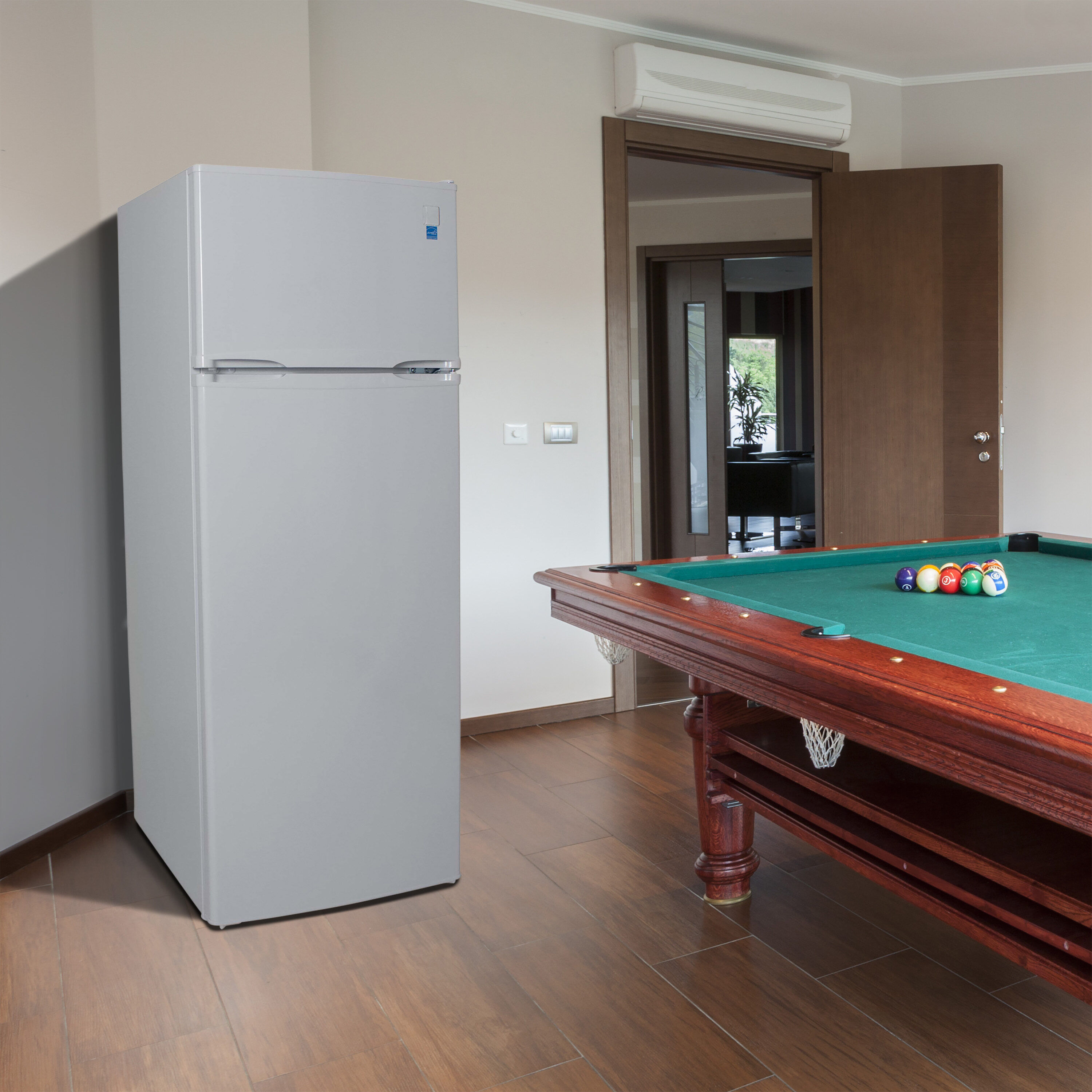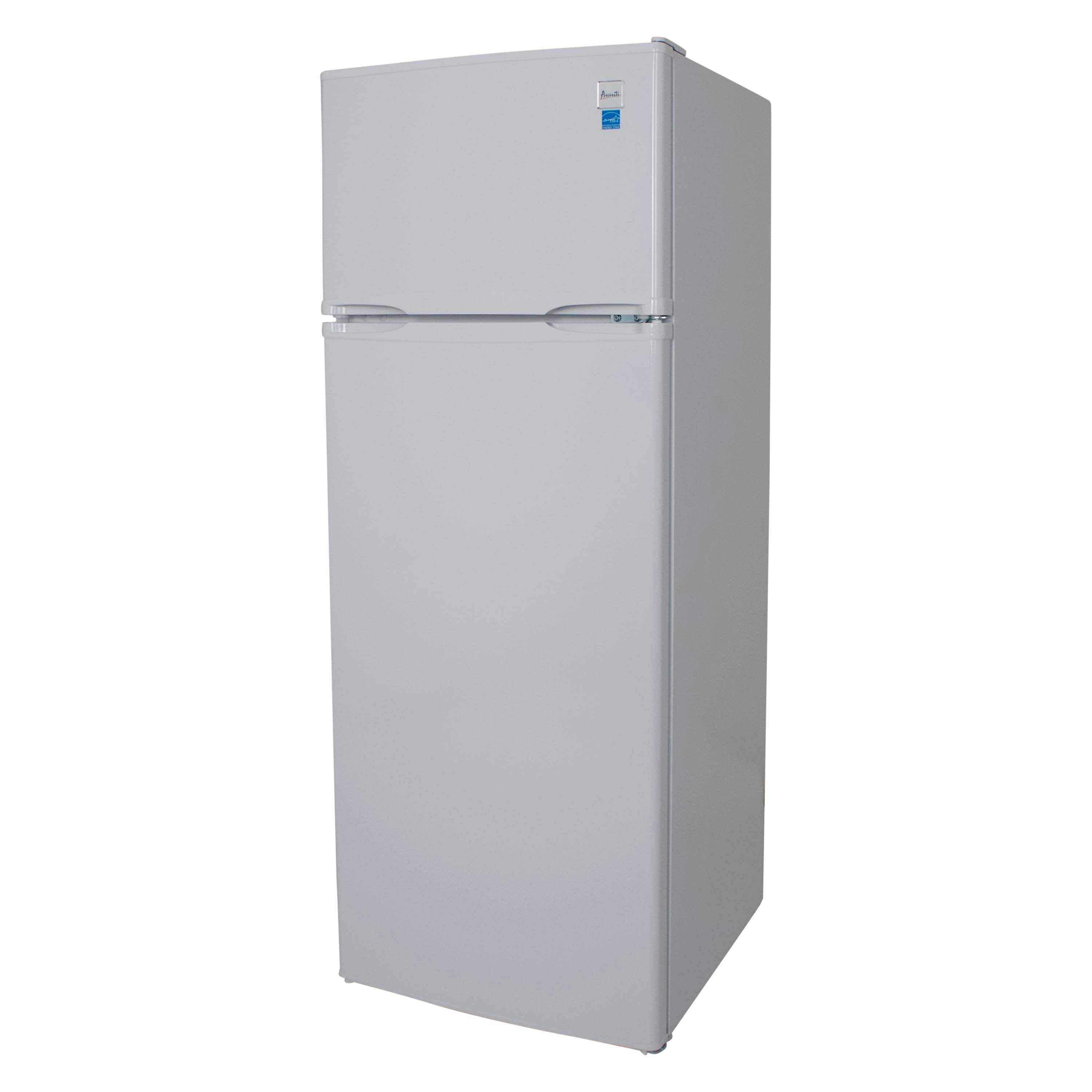 Store your food and beverages in the compact, 7.3 cubic feet, white apartment refrigerator with freezer from Avanti. Ideal for anywhere you need a small refrigerator, it’s the perfect space saving fridge for a studio apartment, game room, tiny home, rental room, condo or vacation home. This apartment sized fridge features full width door bins that hold 2 liter and gallon bottles, adjustable and removable shelves, and a see through crisper for storing your fruits and vegetables. The top mounted freezer includes a wire shelf to keep your frozen foods organized. Select the right settings for your items with the adjustable temperature control. Covered by the Avanti One Year Limited Warranty.