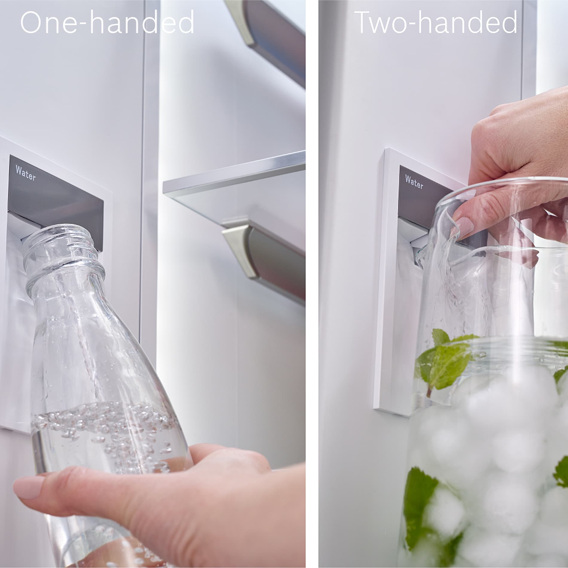 Internal water dispenser includes UltraClarityPro® filter and removes over >99.9% of sediments, including harsh elements from your water and ice