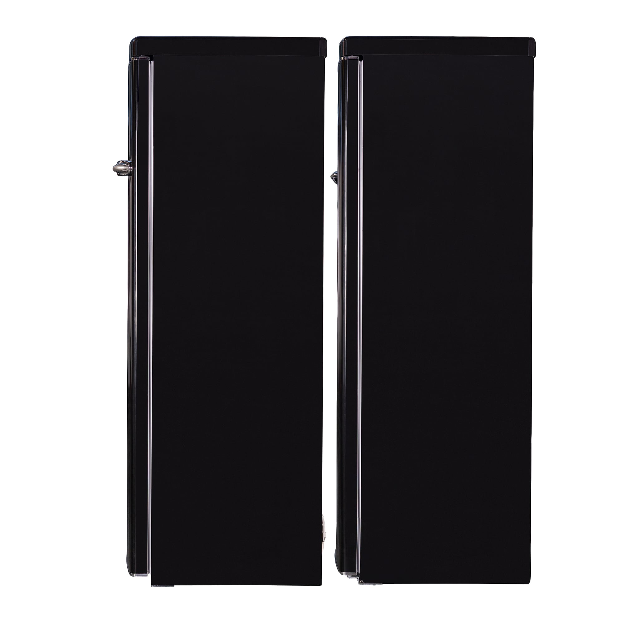 Achieve the perfect level of “cool” — both in style and temperature — with the Retro Refrigerator Freezer Pair. Combining two convenient models (the FF 830 and the RR 1100), each design works to meet your needs. The FF 830 is equipped with six drawers and one flap, while the RR 1100 has five shelves and one drawer. Both are built with appealing retro classic looks and come in red, black, and cream colors. Reaching the optimum level of icy cold, the FF 830 freezer has a capacity of 8.3 cubic feet, and has an adjustable temperature range of 3.2° F – 11.2° F. It is frost free, Energy Star rated, and has a replaceable door gasket. Like the refrigerator side, it runs on powerful compressor cooling and has adjustable feet. The RR 1100 side of the bundle has several of its own unique features. Boasting a capacity of 11.12 cubic feet, there is ample space for storing your favorite foods and beverages. Temperature controls range between 35.6° F – 46.4° F, and it has a crisper for extra storage. There is an interior light to illuminate the contents of the refrigerator, and adjustable shelves for perfect placement. The entire combo measures in at 71.93 x 48 x 27.83 (HxWxD).