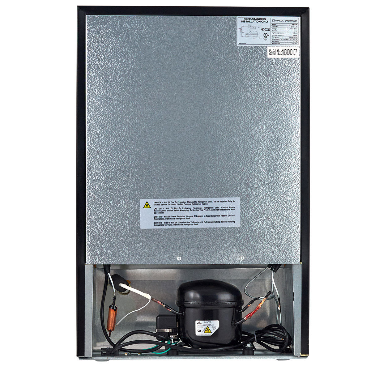 You’ll never run out of space again with our compact but spacious upright freezer. This stainless steel freezer fits in small space where cold storage is needed. This space-saving compact upright freezer is designed with a flush back, allowing it to fit cleanly against the wall or into corners. Adjustable leveling leg and reversible door to fit unique spaces, and store all your go-to foods in two accessible wire pullout drawers. Adjustable thermostat can meet all your needs while keep your energy costs down.freestanding Setup design with 3.0 cubic feet capacity;stainless door and black cabinet presents a sleek and clean look;adjustable 7-grade temperature control to select your desired temperature;approximate temperature range of -8degree F to 7degree F;the evaporators below the fixed chrome shelves for fast refrigeration;classification storage decreases taint of odor and easy to locate food;recessed door handle for easy access to your frozen foods;with adjustable leveling legs to adjust level;manual defrost helps keep the freezer clean;flush back design saves space in your home or office;perfect for small space;interior capacity: 3.0 cu.ft.;temperature Range: -22 -14degrees/-8-7degree F;refrigerant: R600A;rated voltage/frequency: 115V/60Hz;Amps: 1.1A;total dimensions: 20.5L x 22D x 31H inch;product weight: 53lbs;Package includes:1 x upright freezer;1 x instruction.