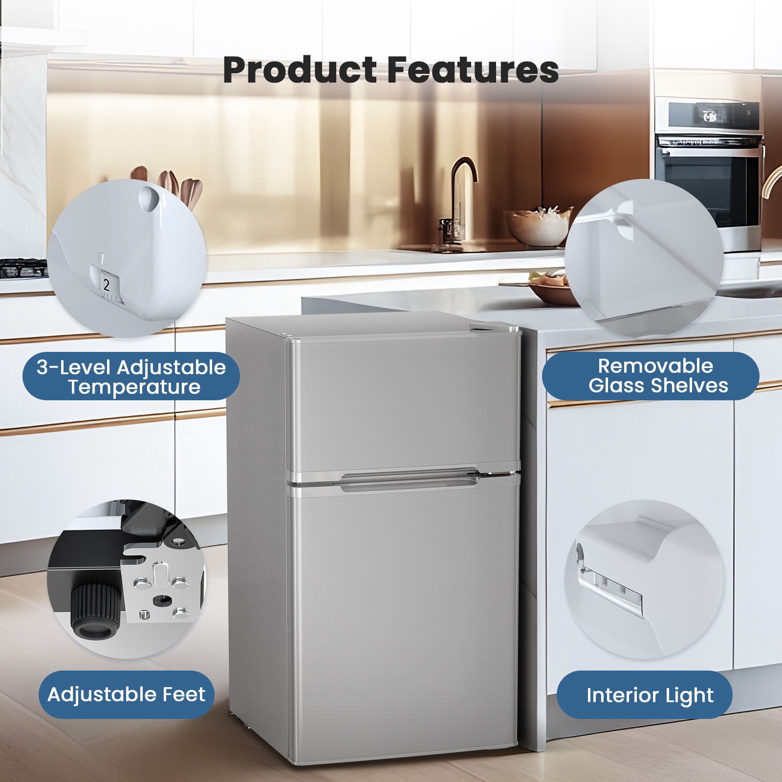 - [Large Capacity] The mini fridge with 3.1 cu ft capacity including freezer, it takes up very little space and is perfect for bedrooms, offices, dorms, apartments and garages, providing great convenience for your life