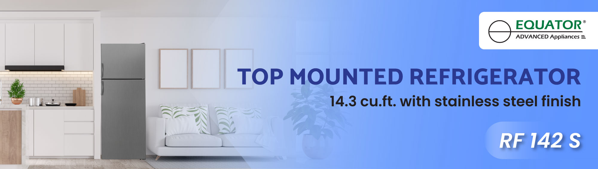 The Equator Top Mounted RF 142 S Refrigerator delivers sleek style and innovative cooling technology, making it an ideal energy-efficient addition to any kitchen. At its core, a new generation compressor cooling system ensures optimal food preservation by blowing dry, cold air that evenly cools and minimizes humidity, across its 10.8 cu. ft. refrigerator and 3.5 cu. ft. freezer compartments. For maximum storage flexibility, the unit features two crisper drawers, 4 adjustable shelves, and a reversible door, allowing for left- or right-handed use. Further enhancing convenience are four refrigerator door shelves, including a 2-liter gallon-sized rack, one glass freezer shelf, and two freezer door shelves. Measuring 68.1 inches in height, 27.5 inches in width, and 28.3 inches in depth, this appliance is equipped with adjustable feet for easy leveling to ensure a perfect fit in any space. Operating on 110V/60Hz/1.84A with R600a refrigerant, this 14.3 cu. ft. capacity appliance comes with Equator’s one-year parts and labor warranty.