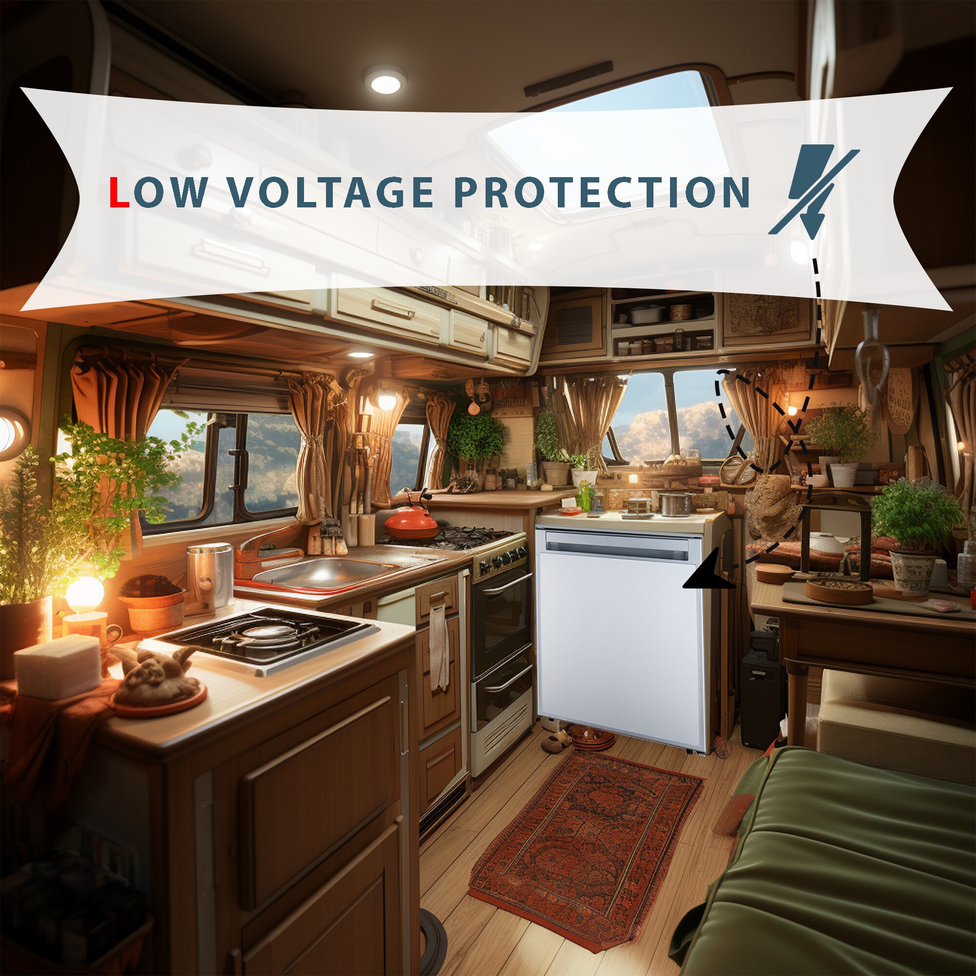 Maintain the perfect chilled environment for all of your perishables while on-the-go with the Equator 2.82 Cubic Feet Brushed Stainless RV Refrigerator Built-In Compressor Cooling (model RF 12-282). Measuring 24.80 x 18.70 x 21.45 (HxWxD in inches), this compact yet spacious fridge offers a built-in configuration for enhanced safety while traveling. The exterior features a sleek, brushed stainless finish, which coordinates well with any interior style. The RF 12-282 operates on DC12V electrical, and has rated power of 48W. Inside the RV Refrigerator, enjoy an impressive 2.82 cubic feet of storage space. Sort and organize all of your beverages and food items using the two included wire shelves, mini crisper drawers, and an in-door bottle storage. The inside temperature can be adjusted between 41°F and 59°F using the electronic temperature control function. Other top features include an energy-efficient compressor, anti-corrosion coating, interior LED light, locking door latch, low voltage protection, and vibration resistance.