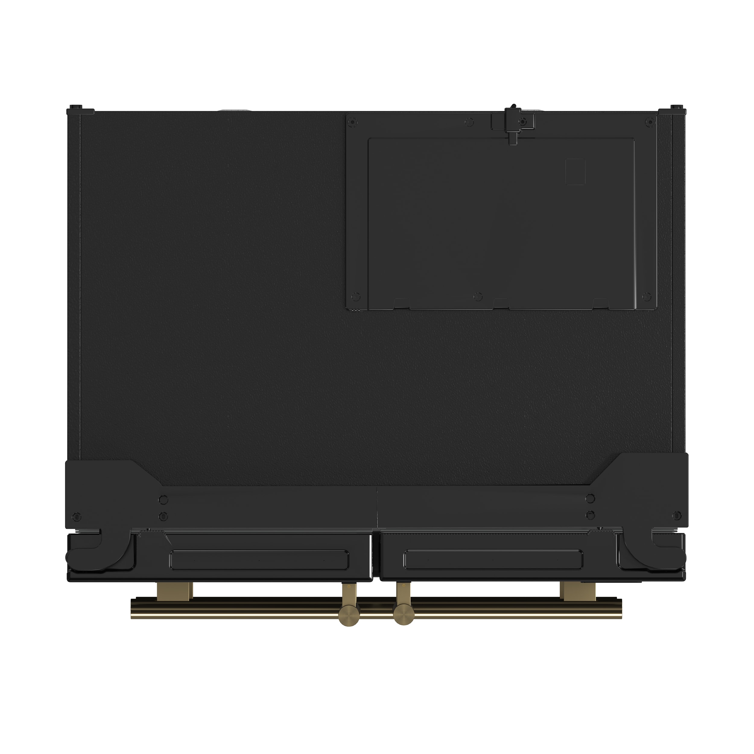 Sleek black finish doors with optional antique brass handles offer a customizable touch of sophistication.
