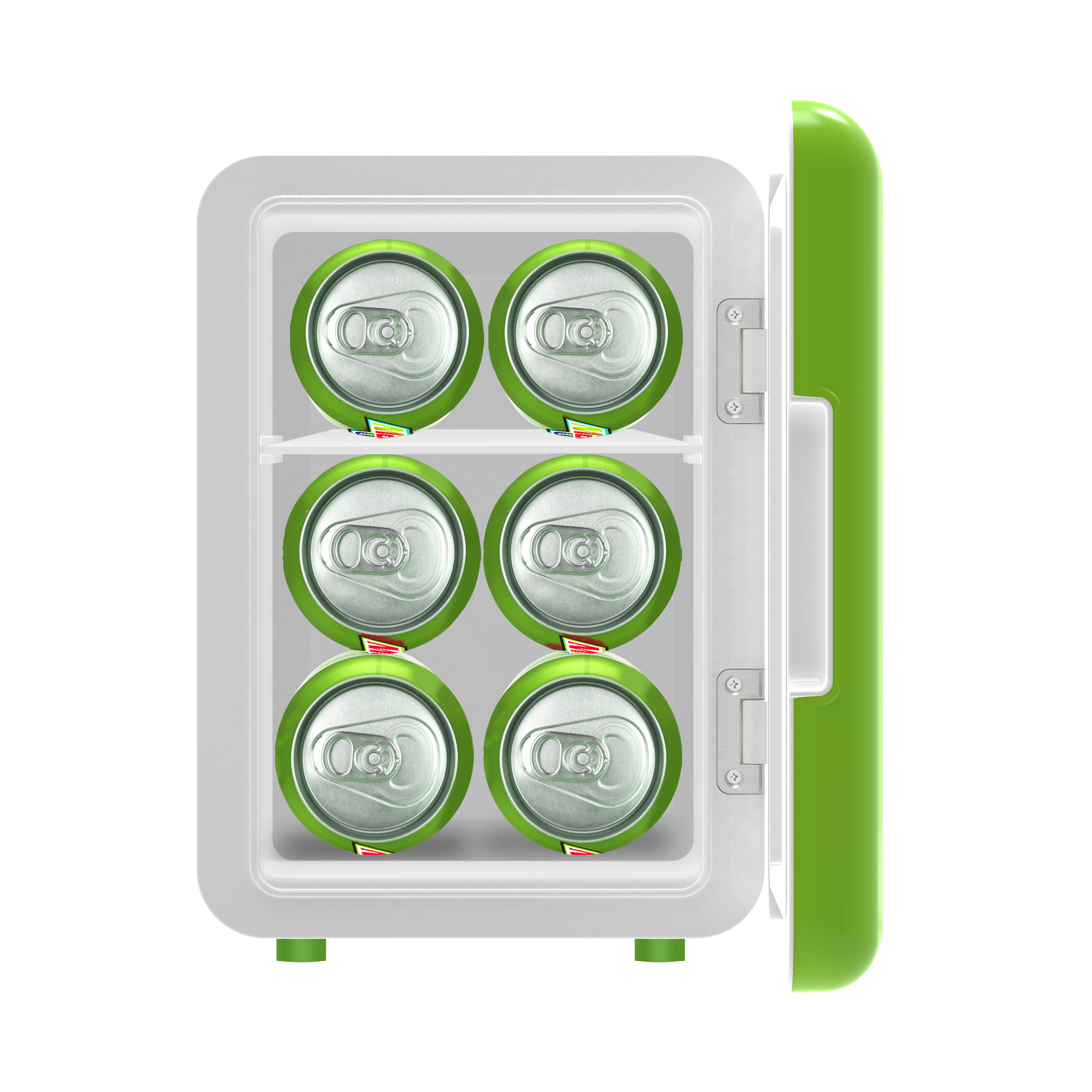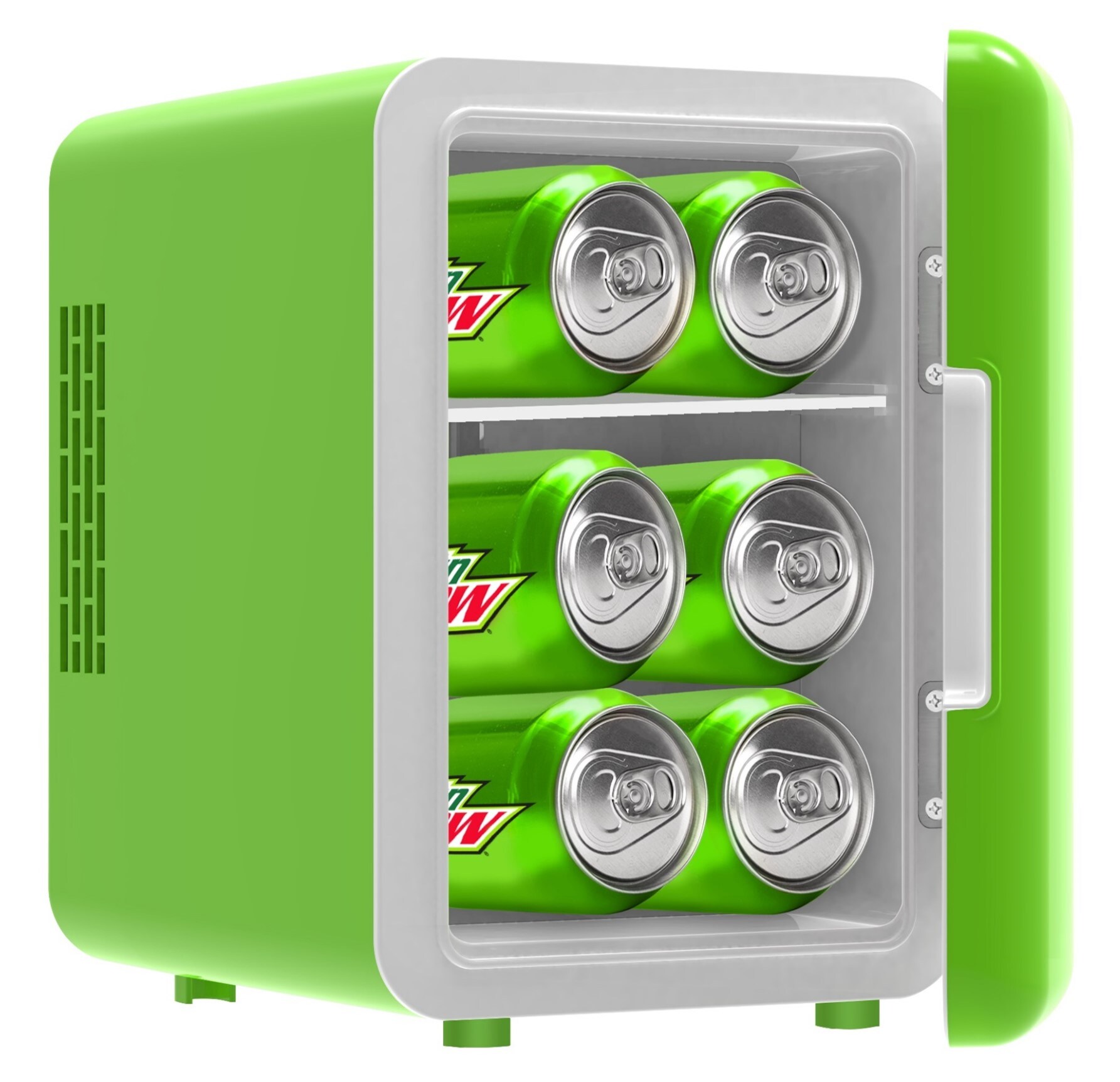 Mini fridge, maximum chill. The portable personal fridge keeps your food and drinks at the perfect temperature. The ultimate versatile cooler, this mini fridge is perfect for all food and drinks. Cools up to 20 degrees Fahrenheit below ambient temperature. Compact space saving design and lightweight features make it easy to take with you anywhere, yet can still fit your needs; 4 Liter capacity chills six 12 ounce cans, while a removable shelf makes it easy to store milk, juice, yogurt, bottles, smoothies, cheese, fruit, coffee, soup, and more. Perfect for personal spaces, bedrooms, offices, hotels, boats, soccer games, sporting events, backyard BBQ’s, pool parties and more! Conveniently plugs into standard home outlets. Approved with advanced safety technology for long-lasting durability.