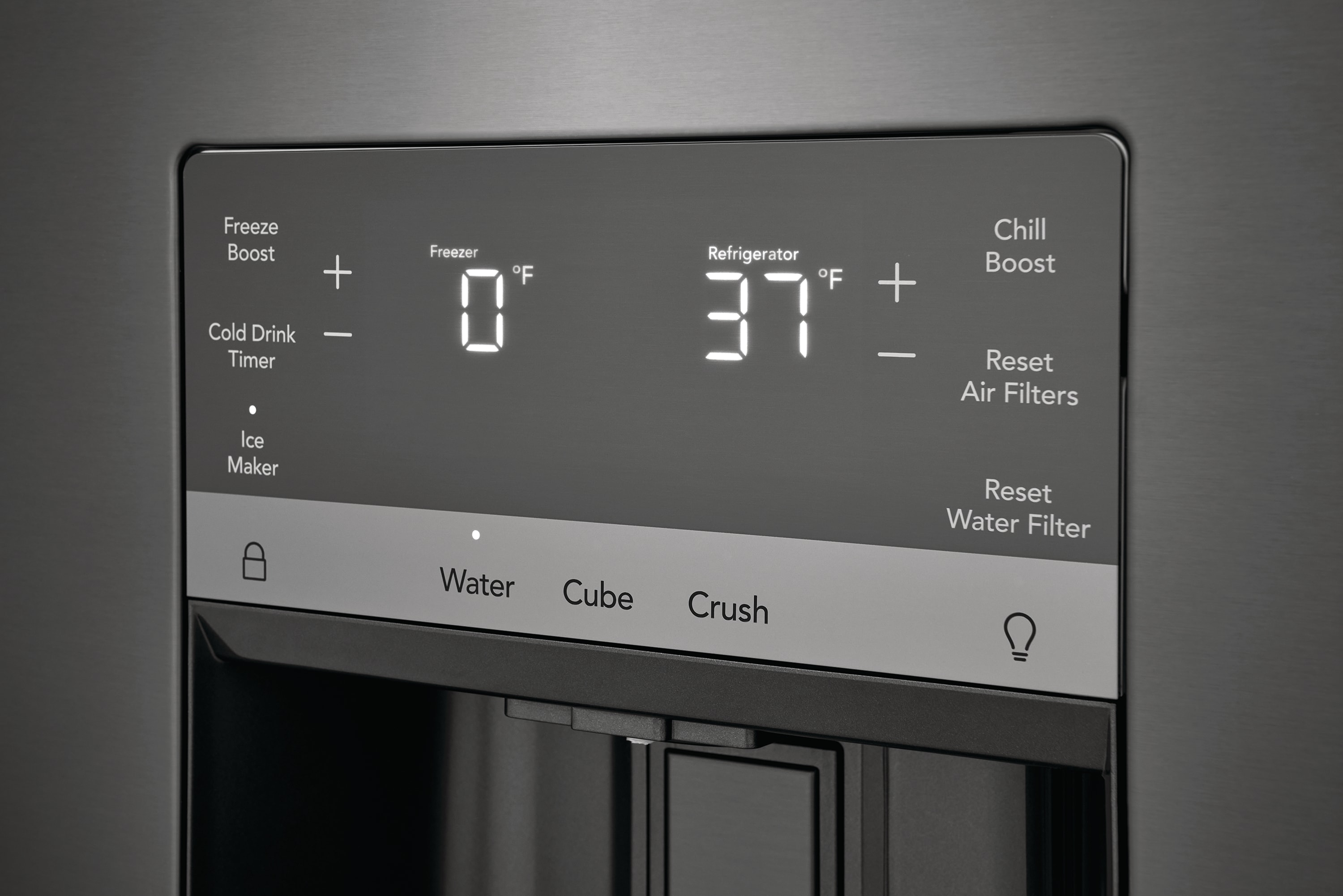 Frigidaire Gallery Standard-Depth 27.8-cu ft 3 -Door French Door Refrigerator with Dual Ice Maker with Water and Ice Dispenser ( Fingerprint Resistant Black Stainless Steel ) ENERGY STAR Certified