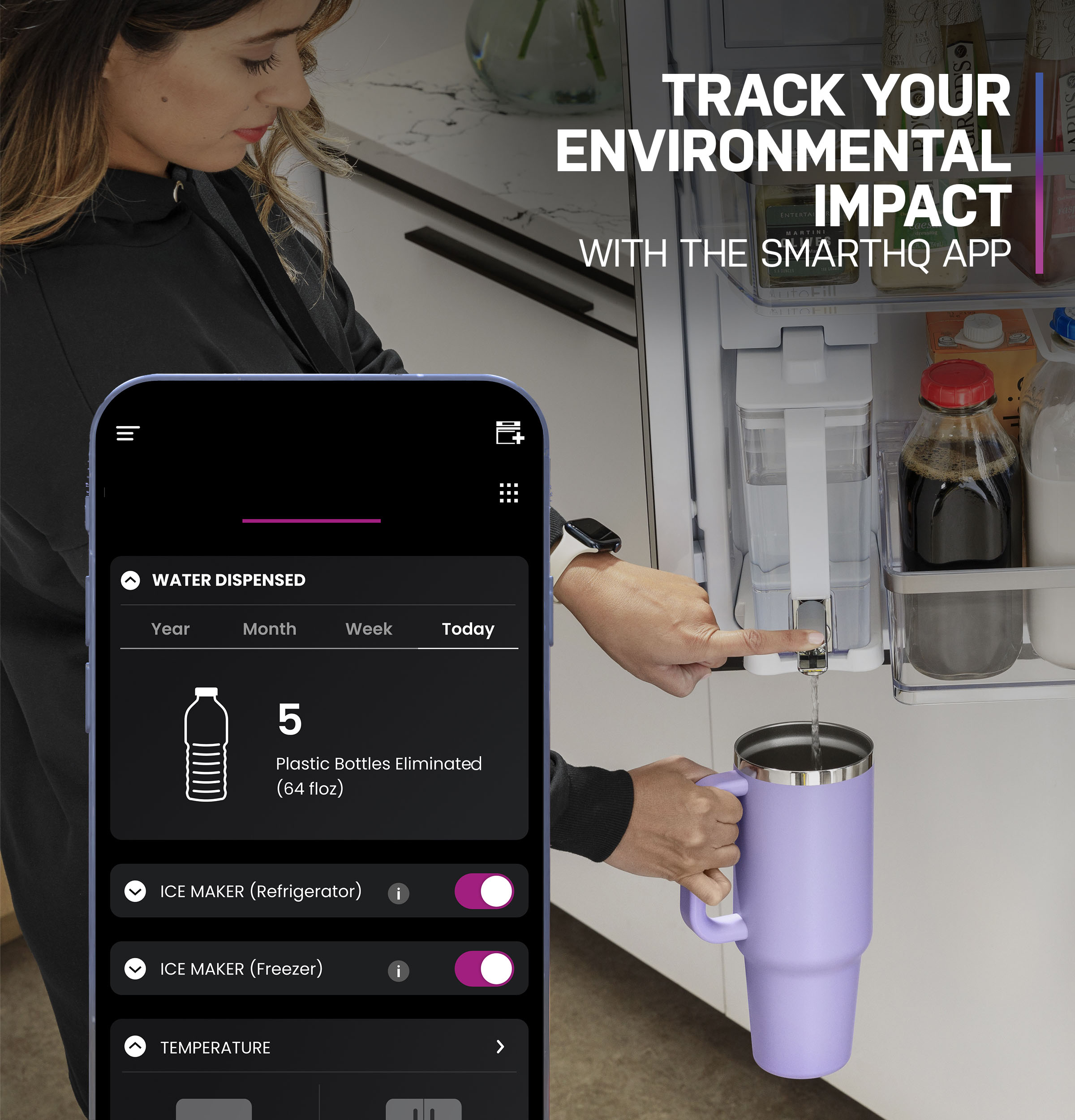 Advanced Water Filtration – this smart refrigerator features an advanced water filtration system that produces safe drinking water and ice; it removes 98% of certain pharmaceuticals from tap water, including ibuprofen, atenolol, fluoxetine, progesterone and trimethoprim