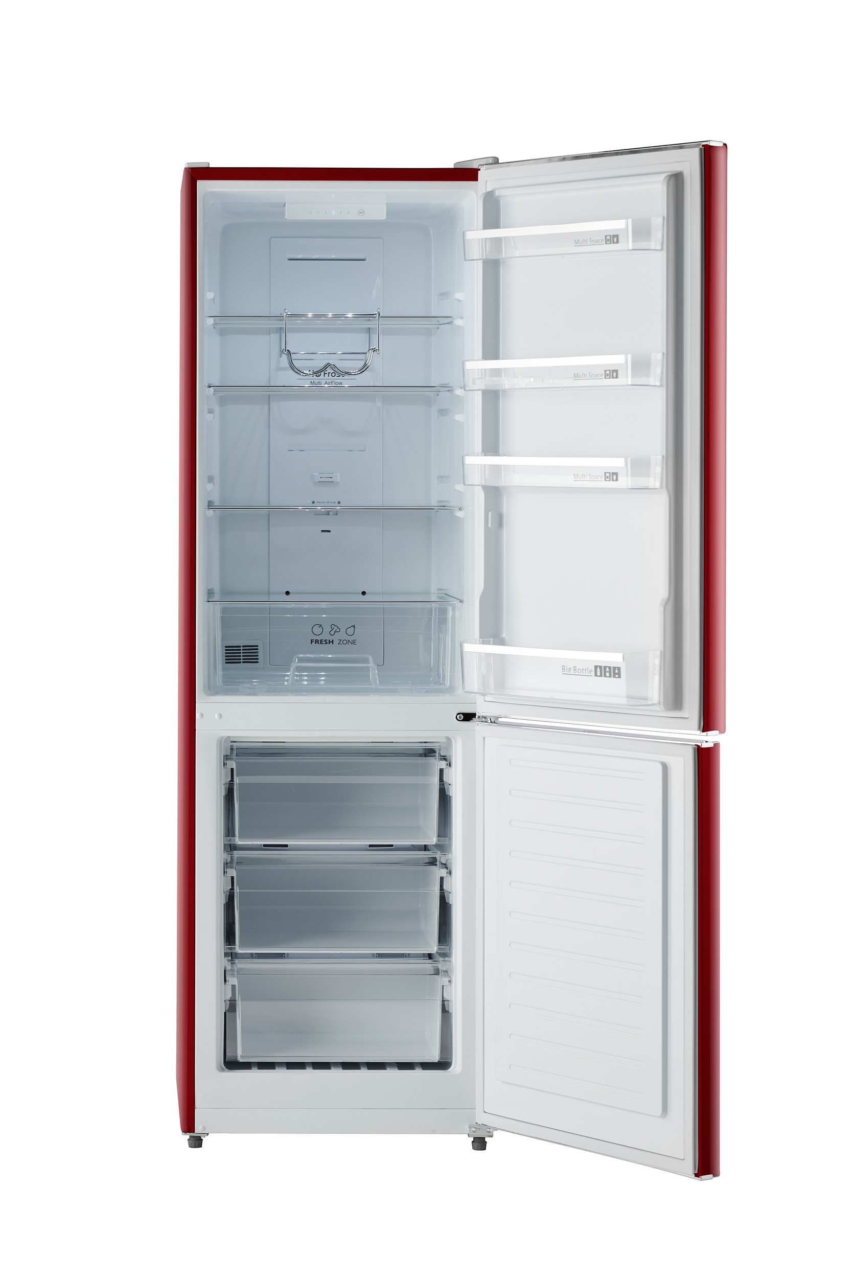 It’s cool, it’s stylish, it’s fun. This retro-modern slim refrigerator has a surprising amount of adjustable space and square sides for side-by-side installation. With bright LED illumination, 3 safety glass shelves, a convenient frost-free top fresh food area and bottom freezer, the iio RM1 comes in gorgeous wine red, black, cream, white, and light blue color options to fit any decor. Truly where style meets function. This 11 cu. ft. Retro-Mod compact fridge offers a future-friendly blend of nostalgic design and modern angles, packed with the latest technology. The electronic controls are easy to reach and easy to use, allowing you to quickly activate the Fast Cool feature that rapidly chills the refrigerator compartment and your freshly-stocked groceries. Frost free and with Multiflow 360° technology that circulates cool air more efficiently around every shelf, through every drawer, and over every surface, keeping your food at the ideal temperature, a large bottom freezer, bright LED lighting, and 3 rollout freezer drawers all enable even the smallest space in your home to reflect your luxury style. This tall skinny refrigerator comes with innovative features including chrome retro handles, a super fresh zone, and is ENERGY STAR certified. It’s perfect for tight spaces and is a slim refrigerator that’s perfectly sized for the small family home.