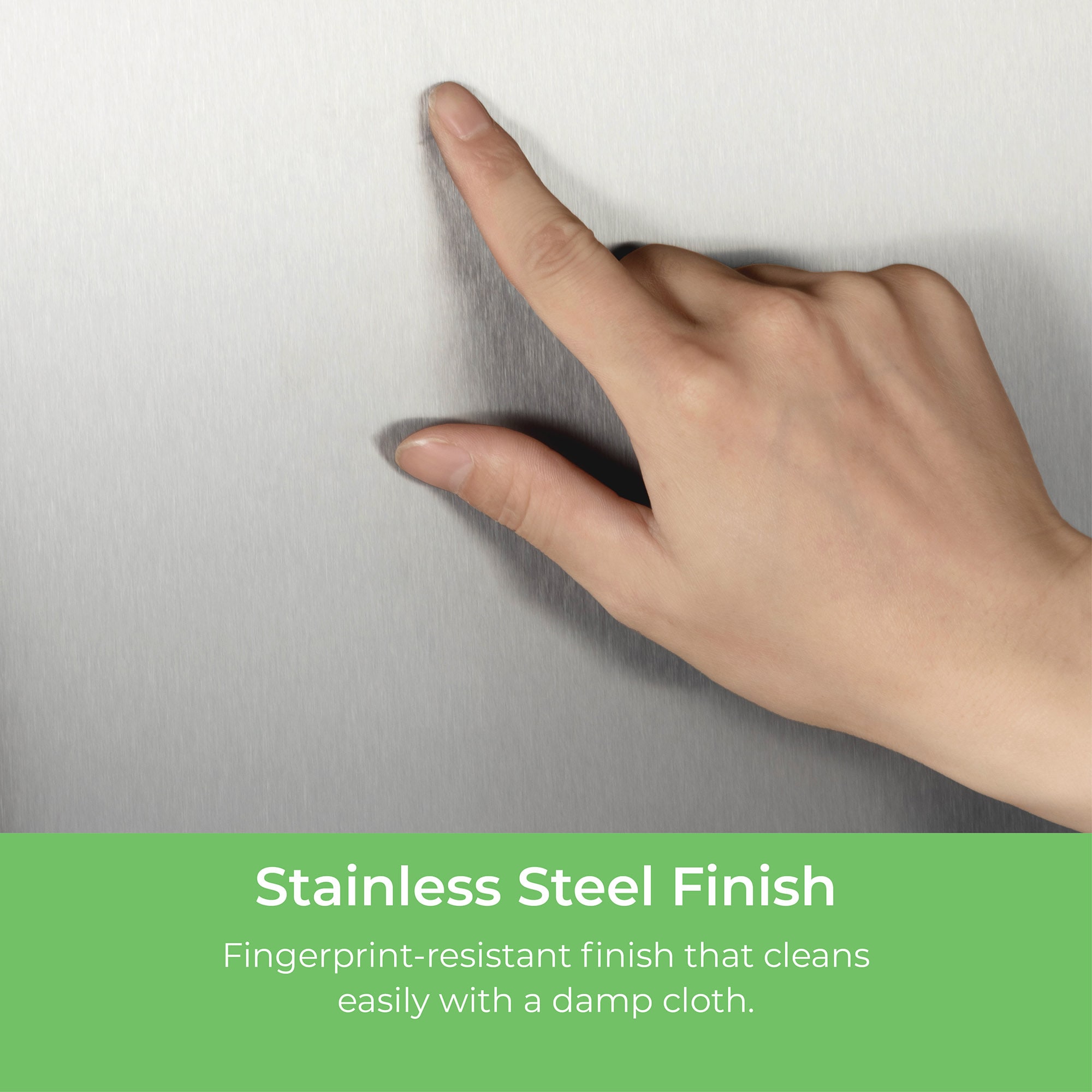 This fridge has 20 cu. ft. of storage space all with a compact footprint. Fingerprint-resistant stainless steel and counter-depth can make a great match for any kitchen, and Accela Chill uses fan-forced cool air to accelerate cooling. A factory installed ice maker allows you to make cubed and crushed ice quickly and easily, and the filtered water dispenser provides fresh water any time. Featuring adjustable full-width glass shelves, you can customize your fridge to fit taller bottles and make the most of your space. Crisper drawers are the perfect place to store fruits and veggies, while the one, gallon-sized clear bin and two-tier freezer organization provides easy and efficient storage. With the inverter compressor, the fridge maintains a consistent temperature to keep food fresh and is also quieter, more energy efficient, and operates with less wear and tear than conventional compressors.