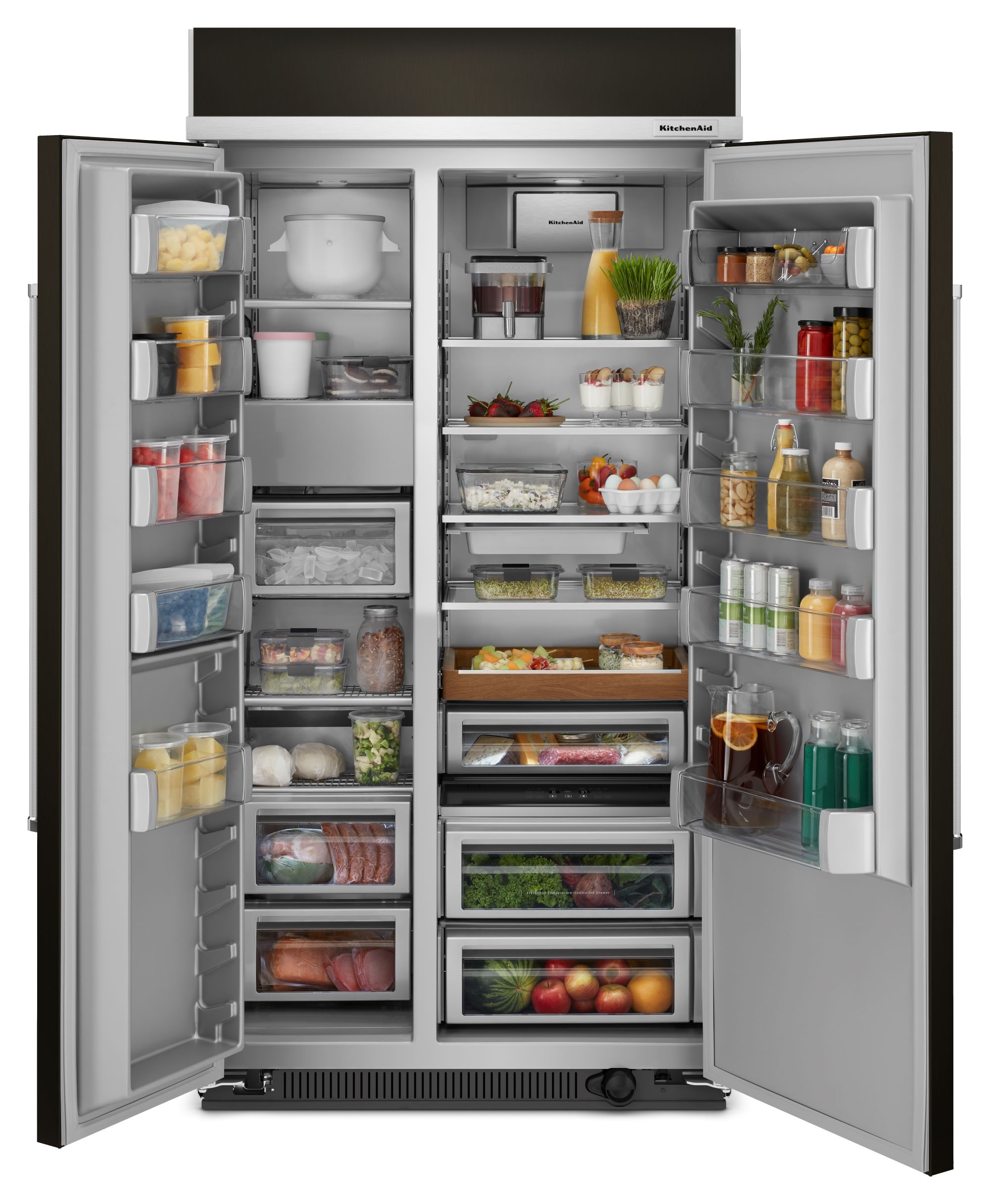 This premium 42” built-in refrigerator features PrintShield™ Finish to resist fingerprints outside, and has innovative storage inside. Like the Under-Shelf Prep Zone with included bakeware, and the moisture- and stain-resistant Wood-Look Pull Out Tray that keeps ingredients beautifully organized. Plus, optimal temperatures for ingredients are maintained with the ExtendFresh™ Plus Temperature Management System.