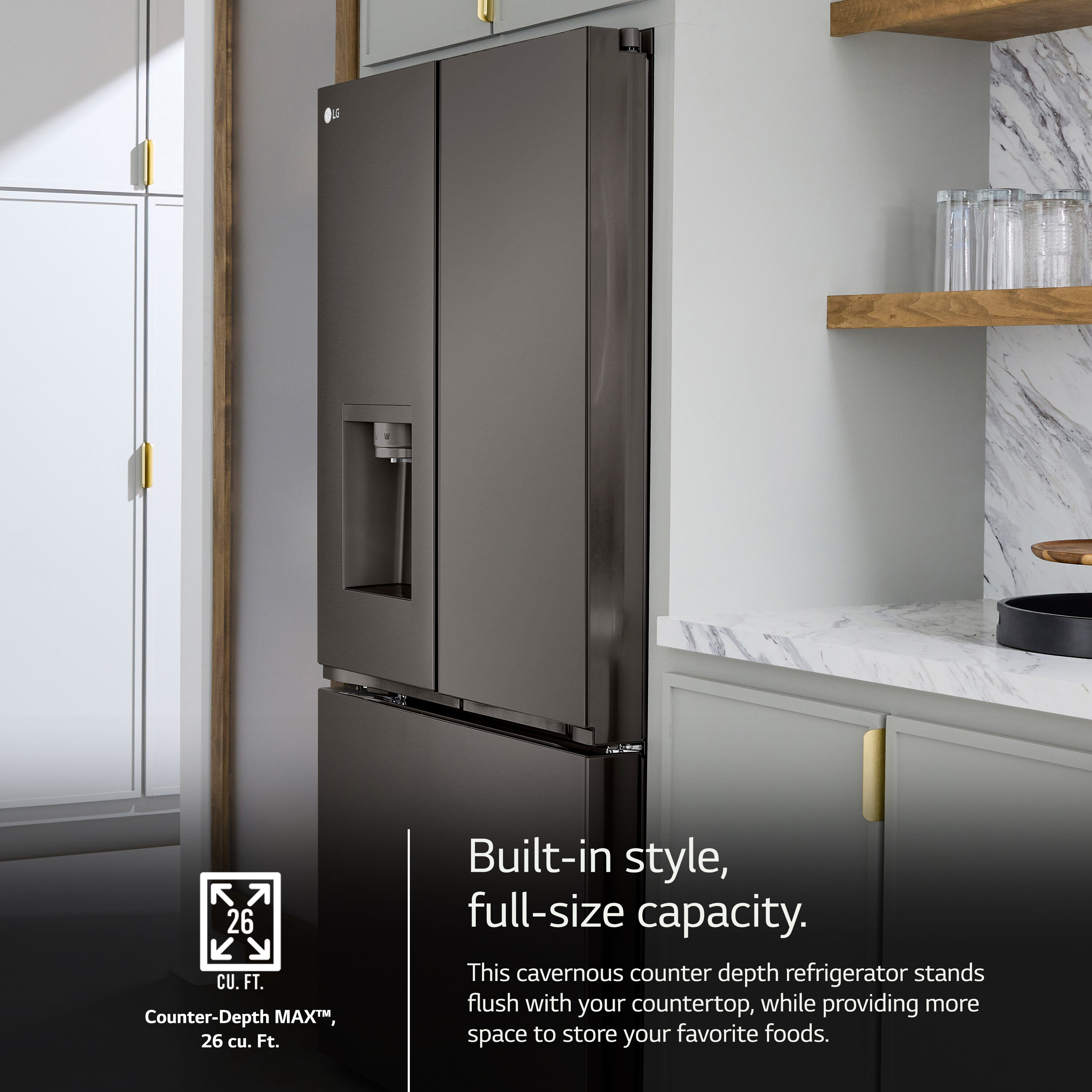 LG Counter-Depth 4 Types of Ice 25.5-cu ft 3 -Door Smart Compatible French Door Refrigerator with Dual Ice Maker with Water and Ice Dispenser ( PrintProof Black Stainless Steel ) ENERGY STAR Certified