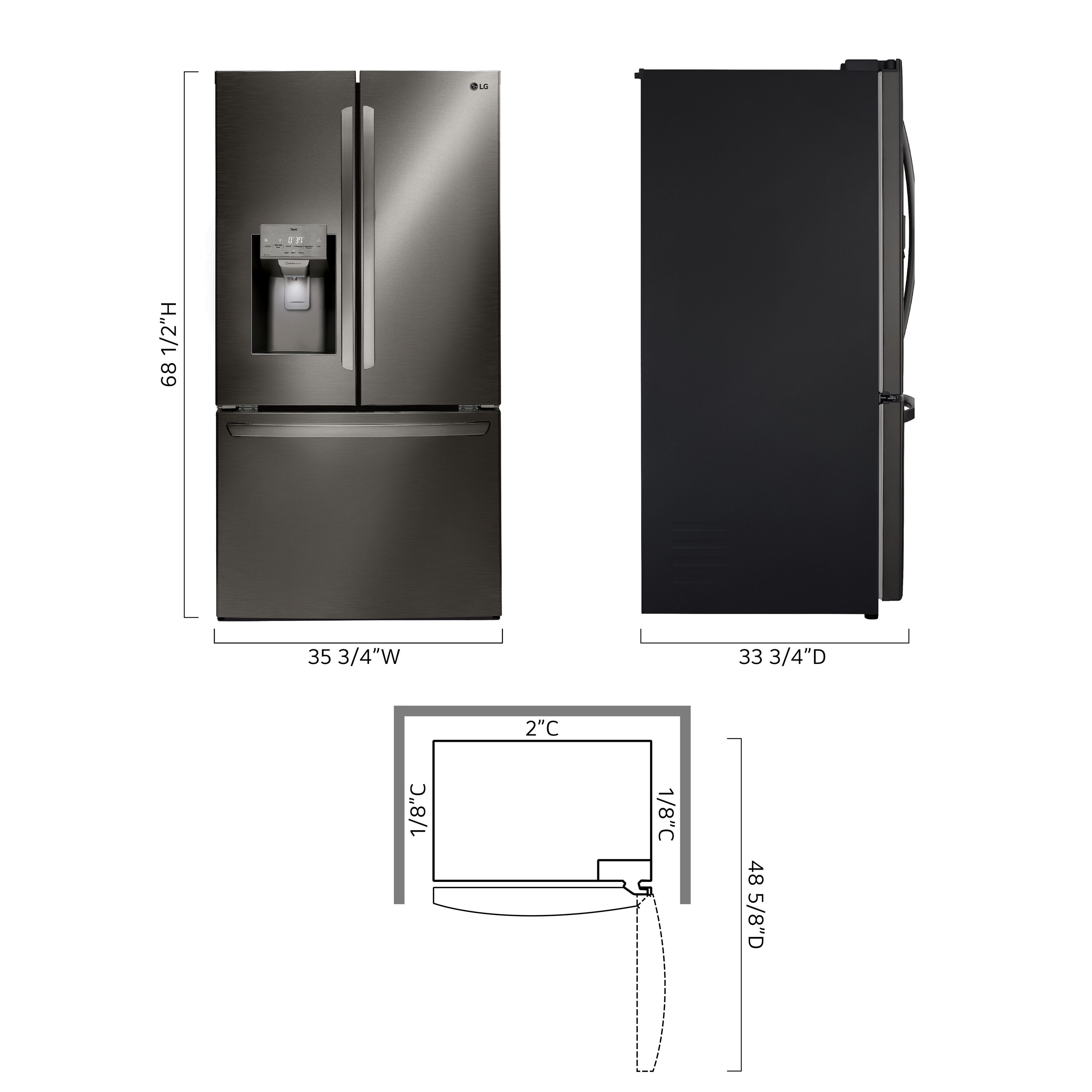 LG Standard-Depth 27.7-cu ft 3 -Door Smart Compatible French Door Refrigerator with Ice Maker with Water and Ice Dispenser ( Printproof Black Stainless Steel ) ENERGY STAR Certified