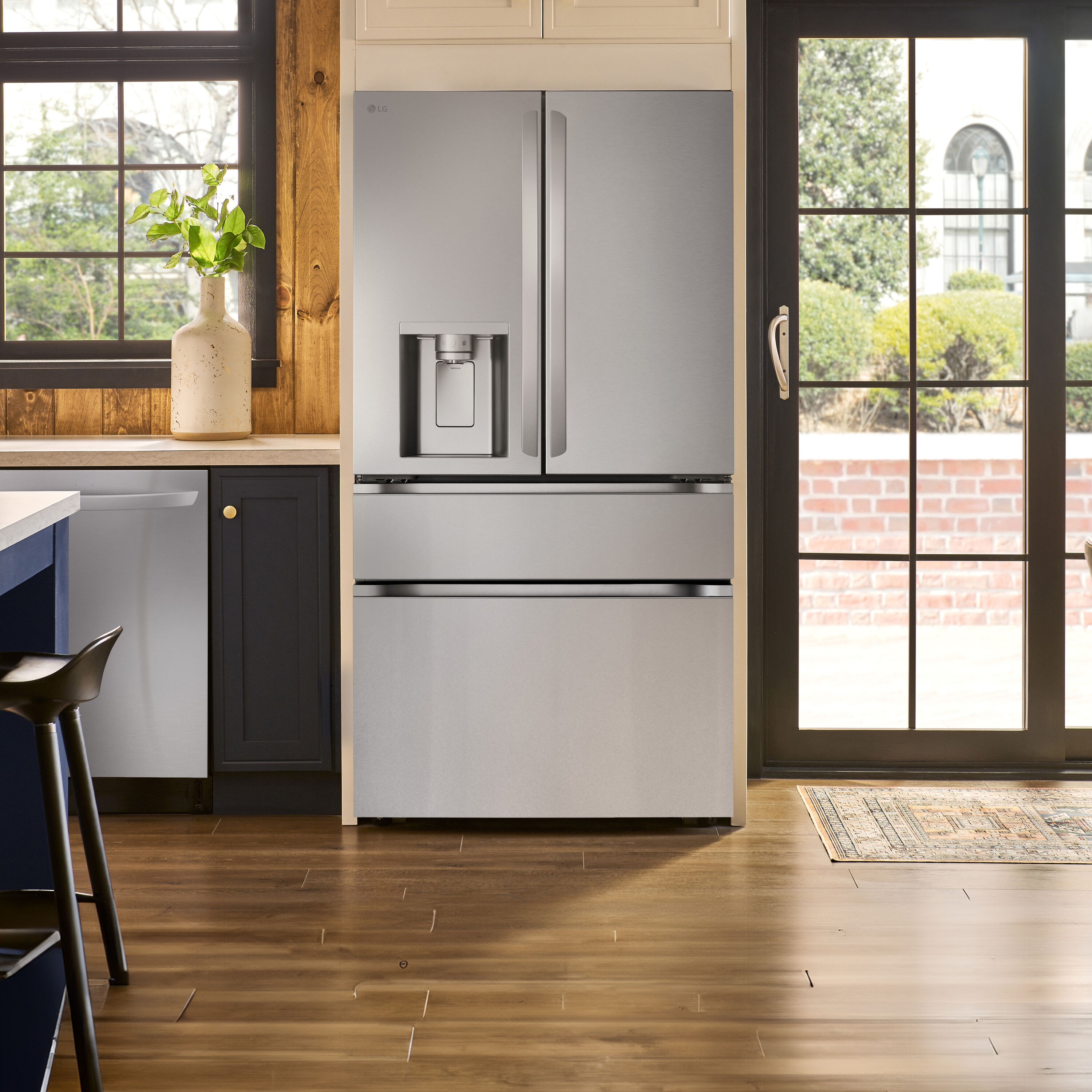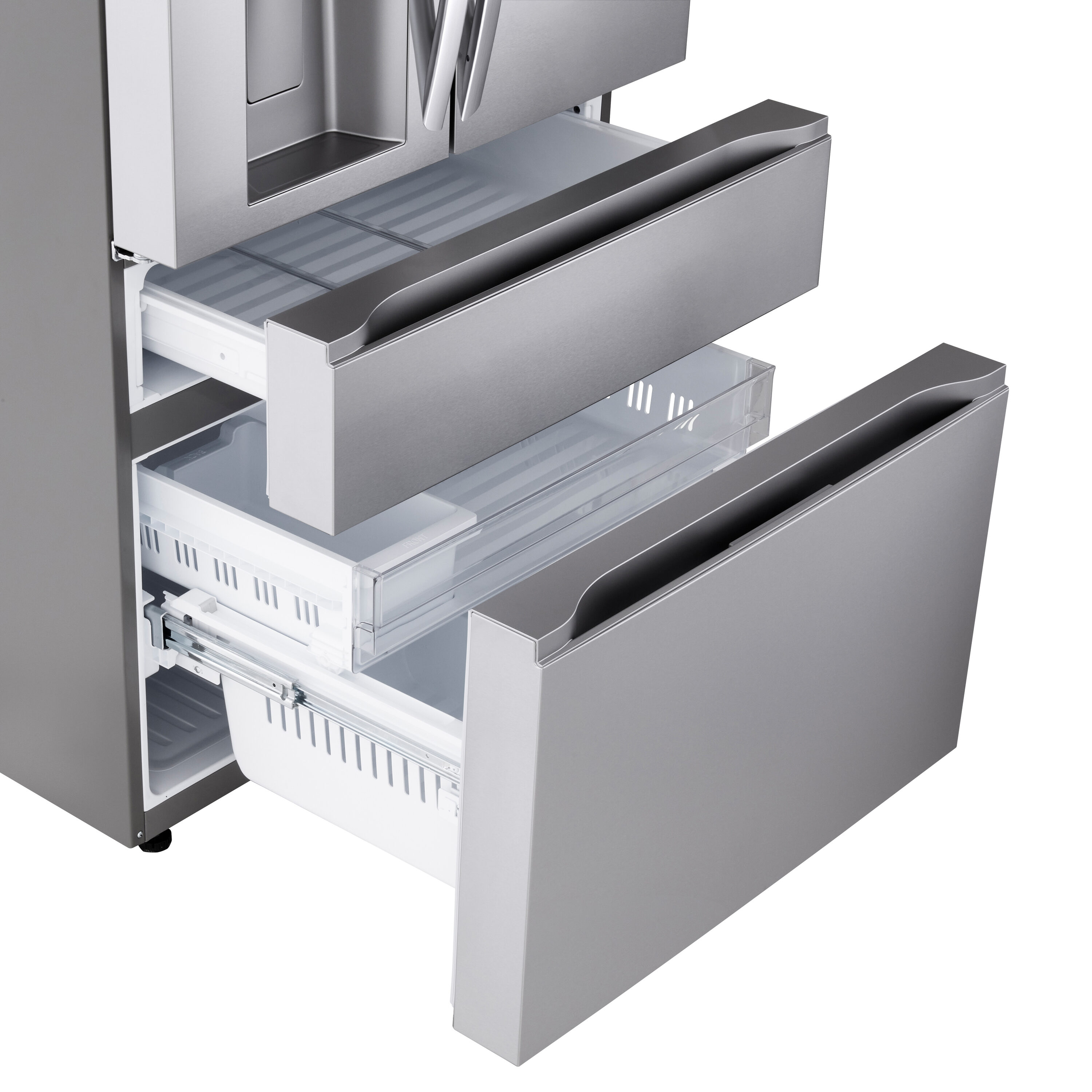 This 4-door Standard-Depth MAX™ refrigerator doesn’t just give you space—it brings a new level of organization, flexibility and style to your kitchen. Sleek flat-panel doors with dual handle design for easy opening add a premium feel. A slam-resistant door design allows the refrigerator doors to close softly and quietly. French doors on top offer easy access to fresh foods, while double drawers below means no more rummaging through stacks of frozen items. The versatile Full-Convert Drawer™ converts from fridge to freezer with just a touch, with 5 temperature settings for optimal storage for a range of fresh or frozen items.