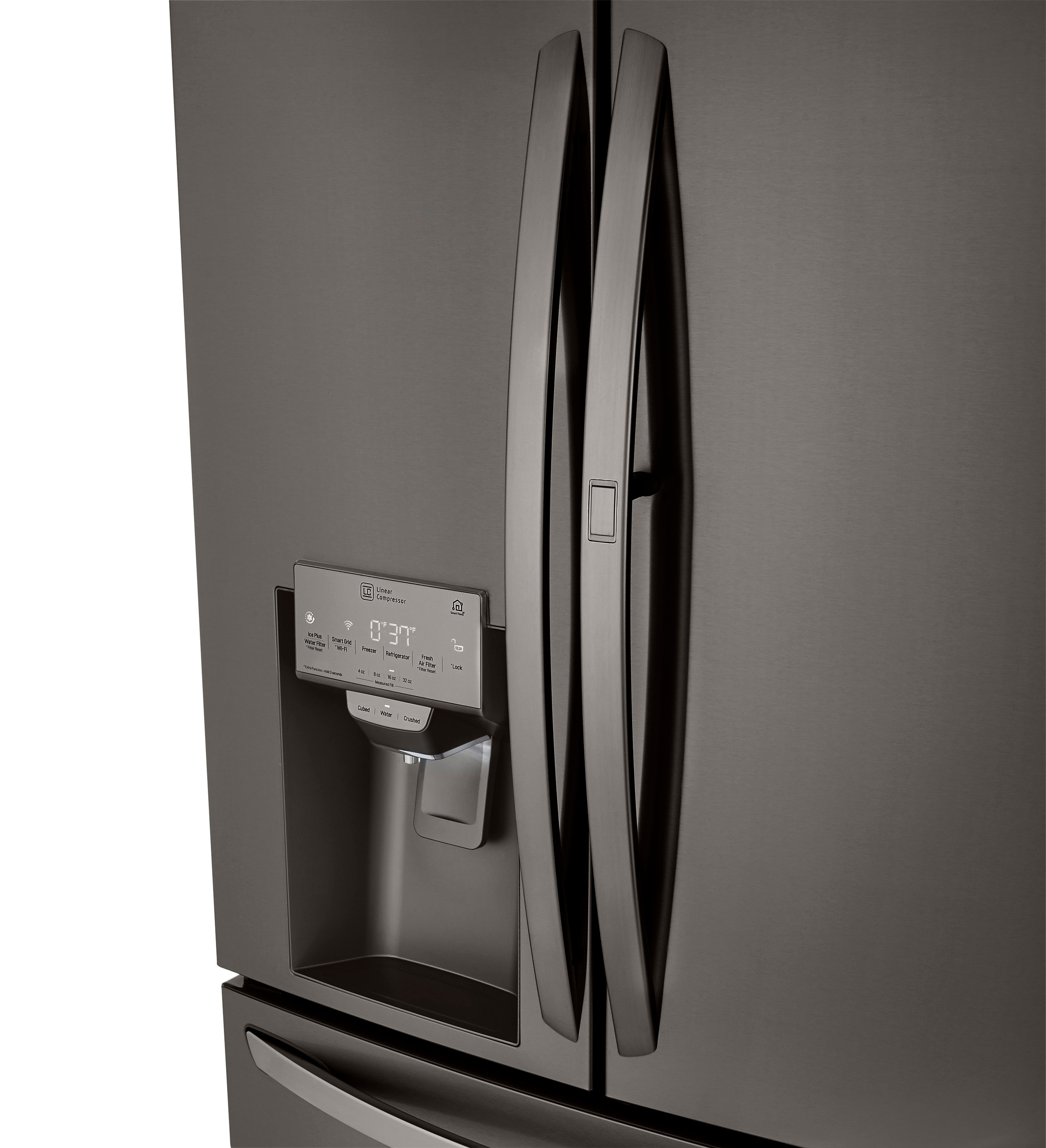 LG Standard-Depth 29.5-cu ft 4 -Door Smart Compatible French Door Refrigerator with Dual Ice Maker with Water and Ice Dispenser and Door within Door ( Printproof Black Stainless Steel ) ENERGY STAR Certified