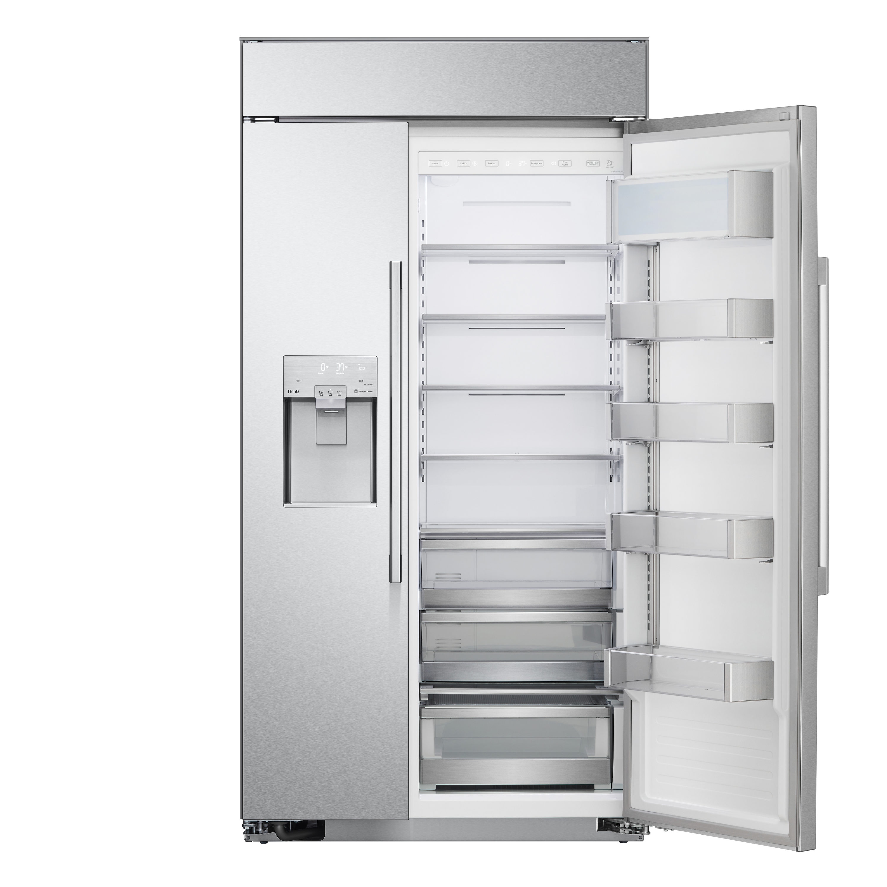 One glance and you know this is the built-in refrigerator you’ve been dreaming about. No detail has been overlooked, with flush, seamless installation, modern flat panels and handles that exude pro style. Look again and discover the all-stainless gleam of the redesigned dispenser and the shape-shifting flexibility of interior Easy Moving door bins. Performance is built-in, too, with cooling technologies designed to keep foods fresher, longer, plus the confidence of LG exclusive 2-year limited warranty.