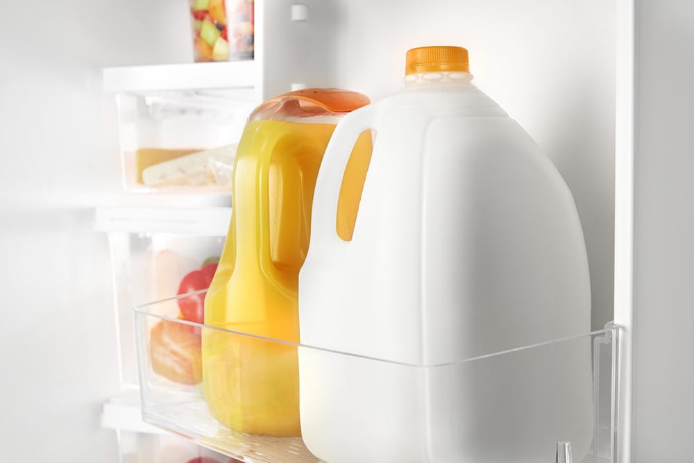 Adjustable gallon door bins are strong enough to hold large bottles, jugs and containers, freeing up shelf space