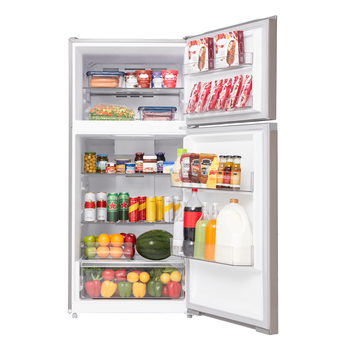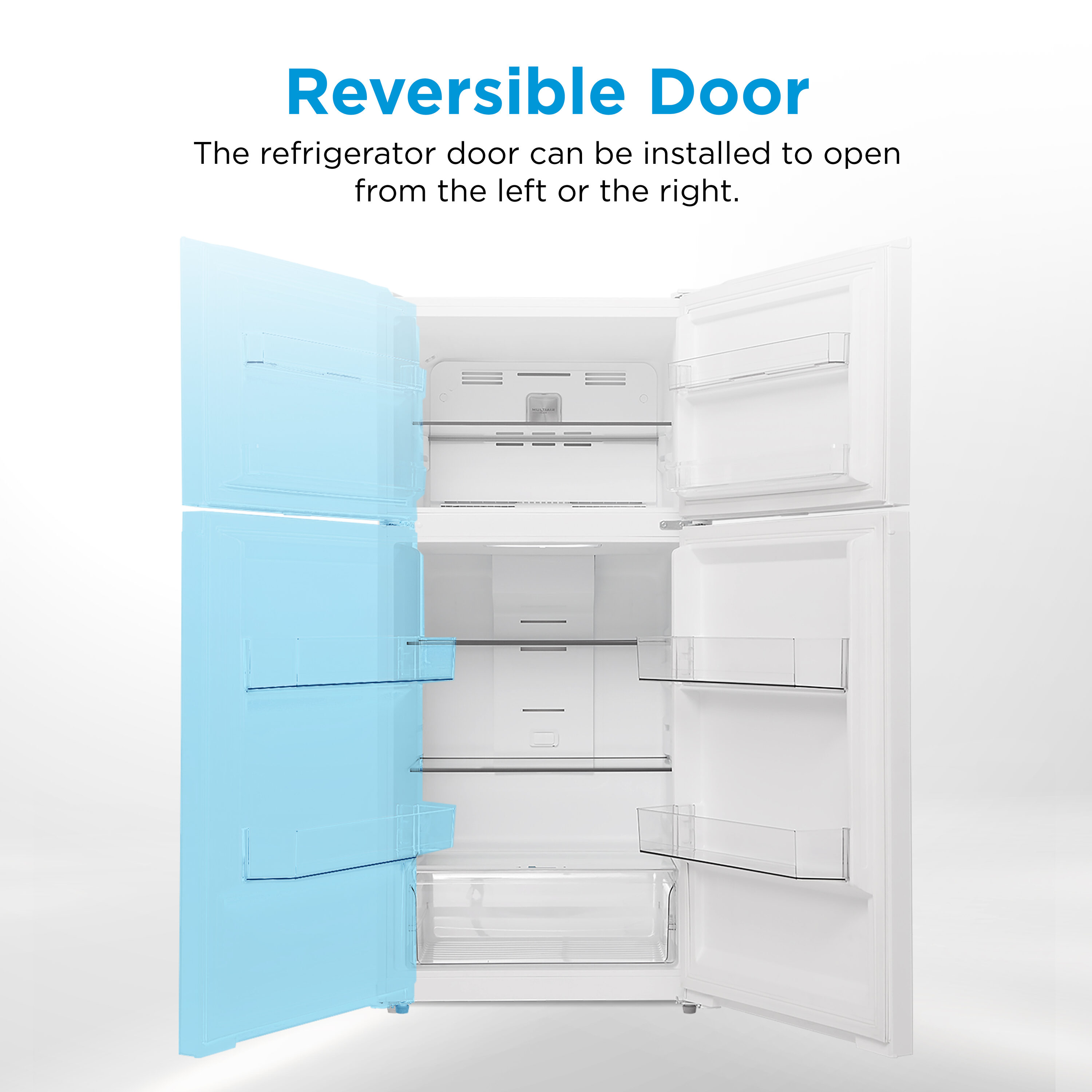 Upgrade your kitchen with the Midea 14.2-cu ft Counter-Depth Top-Freezer Refrigerator (White), which offers both a wide range of convenient features and energy-efficient performance. The internal LED lighting ensures that you can always find what you’re looking for, while the electronic control panel makes temperature adjustments a breeze. Humidity-controlled crisper drawers keep your produce fresh, and the reversible door allows for flexible installation. The top-freezer design puts frozen foods at eye level for easy access. Bring home this refrigerator today to optimize your food storage capabilities and keep your kitchen running smoothly.