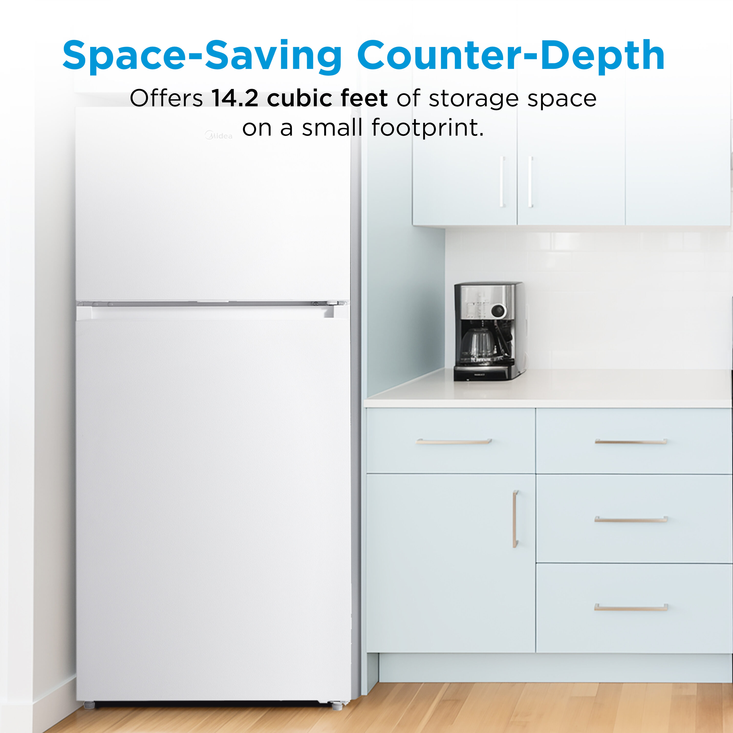 Midea Fingerprint Resistant 14.2-cu ft Counter-Depth Top-Freezer Refrigerator ( White ) Garage Ready ENERGY STAR Certified