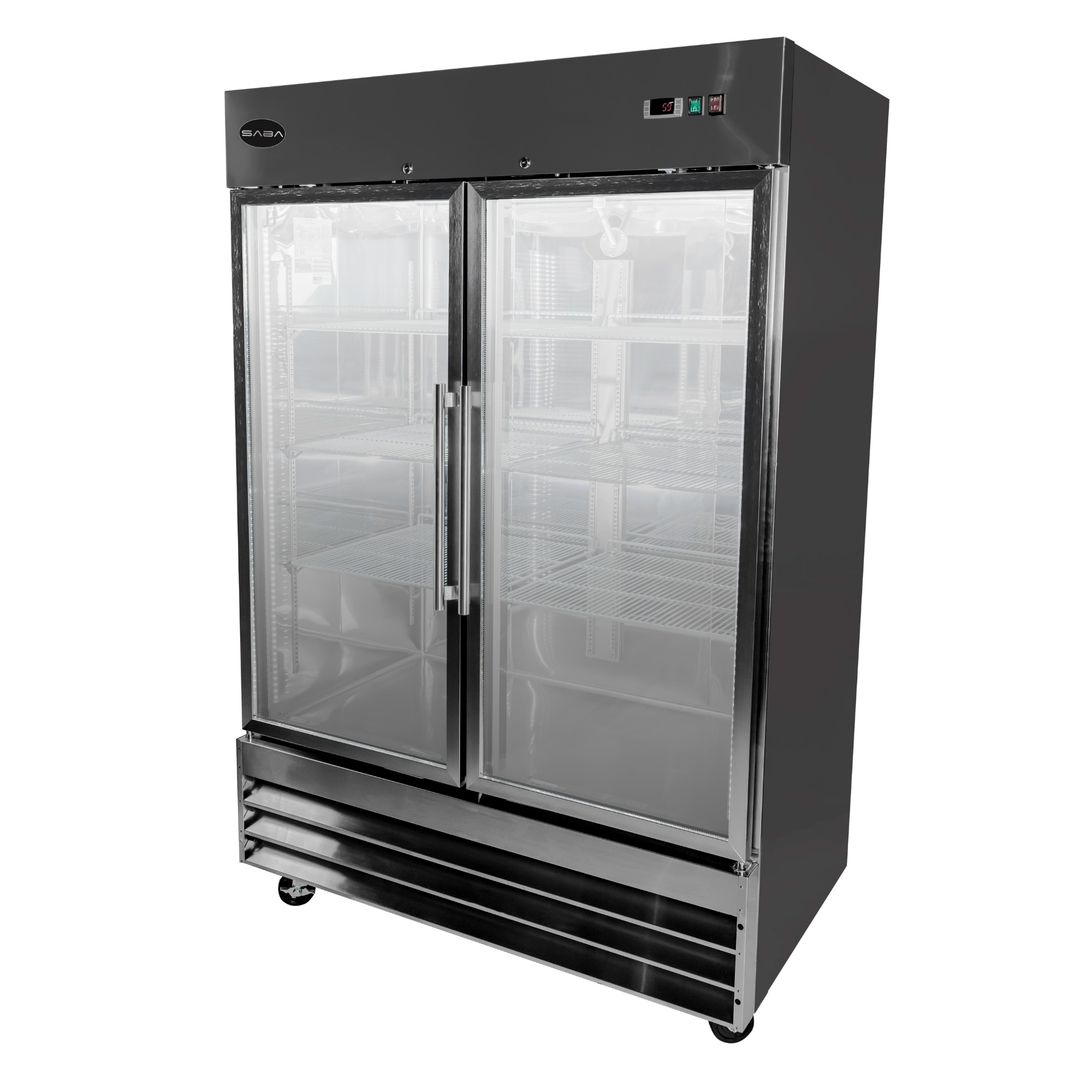 Saba glass door commercial refrigerator provides any market, kitchen or restaurant a product designed to provide years of trouble-free service in demanding commercial applications. This glass door refrigerator has a stainless steel interior and exterior. The glass doors gives this cooler the look of a refrigerated display case. These refrigerators are perfect for the food service industry, giving your commercial kitchen a reliable beverage cooler and refrigeration for food storage.