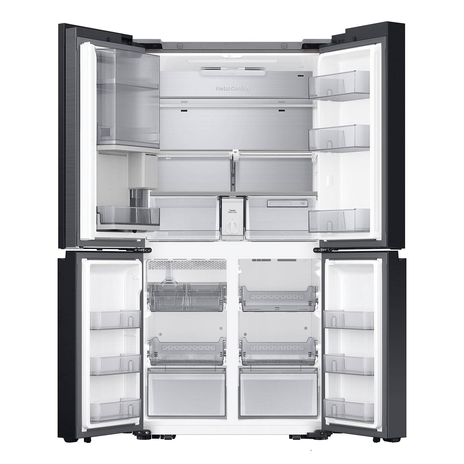 Samsung’s Bespoke 4-Door Flex Counter Depth 23 cu-ft Refrigerator features Beverage Zone made for your drink of choice; Choose from two temperature settings for the Beverage Zone, plus get quick and easy access to refreshingly cold water two ways; Open the refrigerator with ease, even if your hands are full with Auto Open Door; With just a light touch of the door sensor, the refrigerator door will open (An automatic closing function is not available; the actual open angle of the doors can be different by the installation circumstances and usage conditions like storing heavy items in the door bins; touch sensors can be turned on/off from the control panel/display, and its default setting is off)