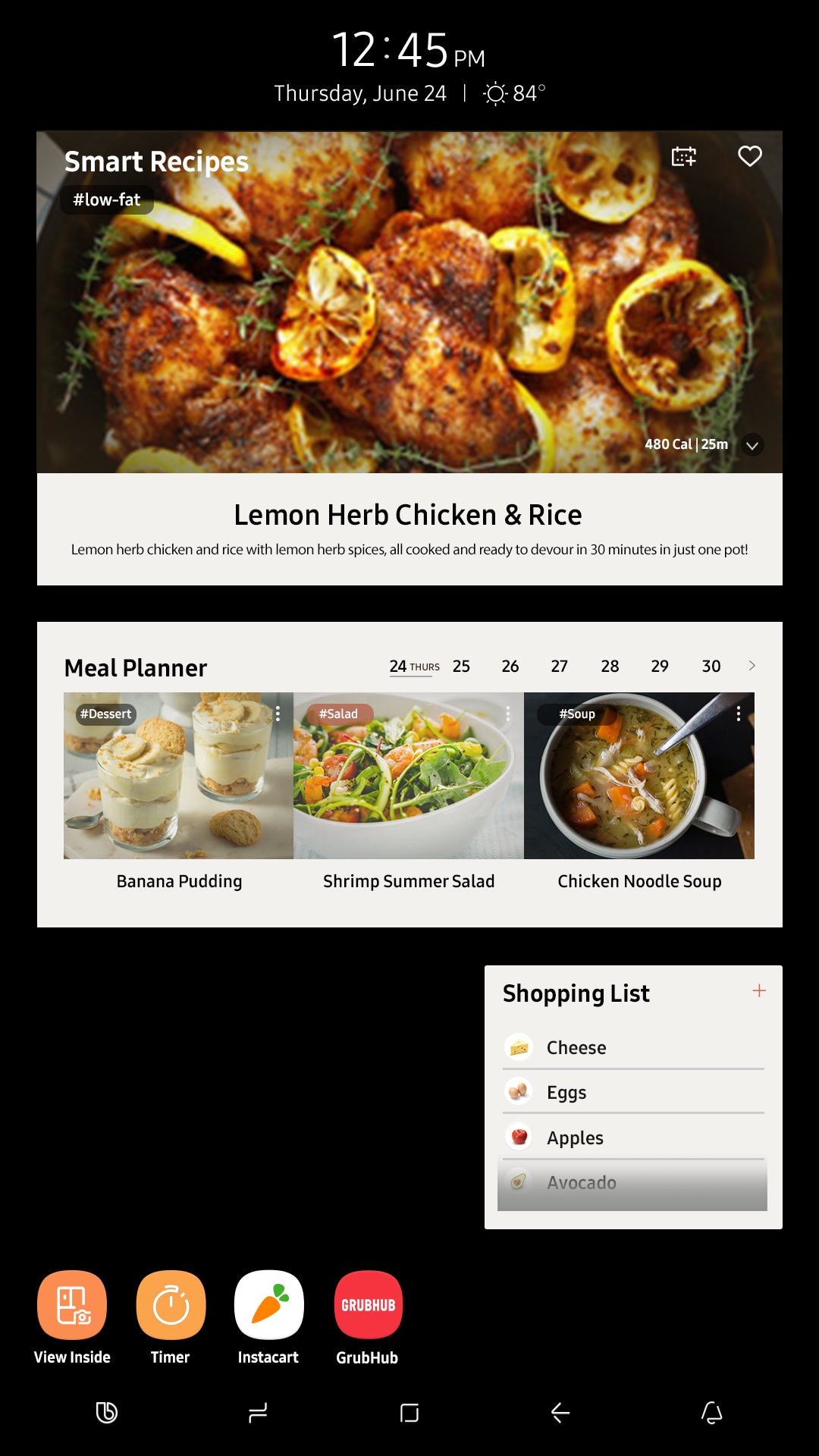 Cooking: See what’s inside your fridge with your phone, or just swipe or tap the screen – SmartThings Cooking provides instant access to meal ideas and can remotely preheat your oven