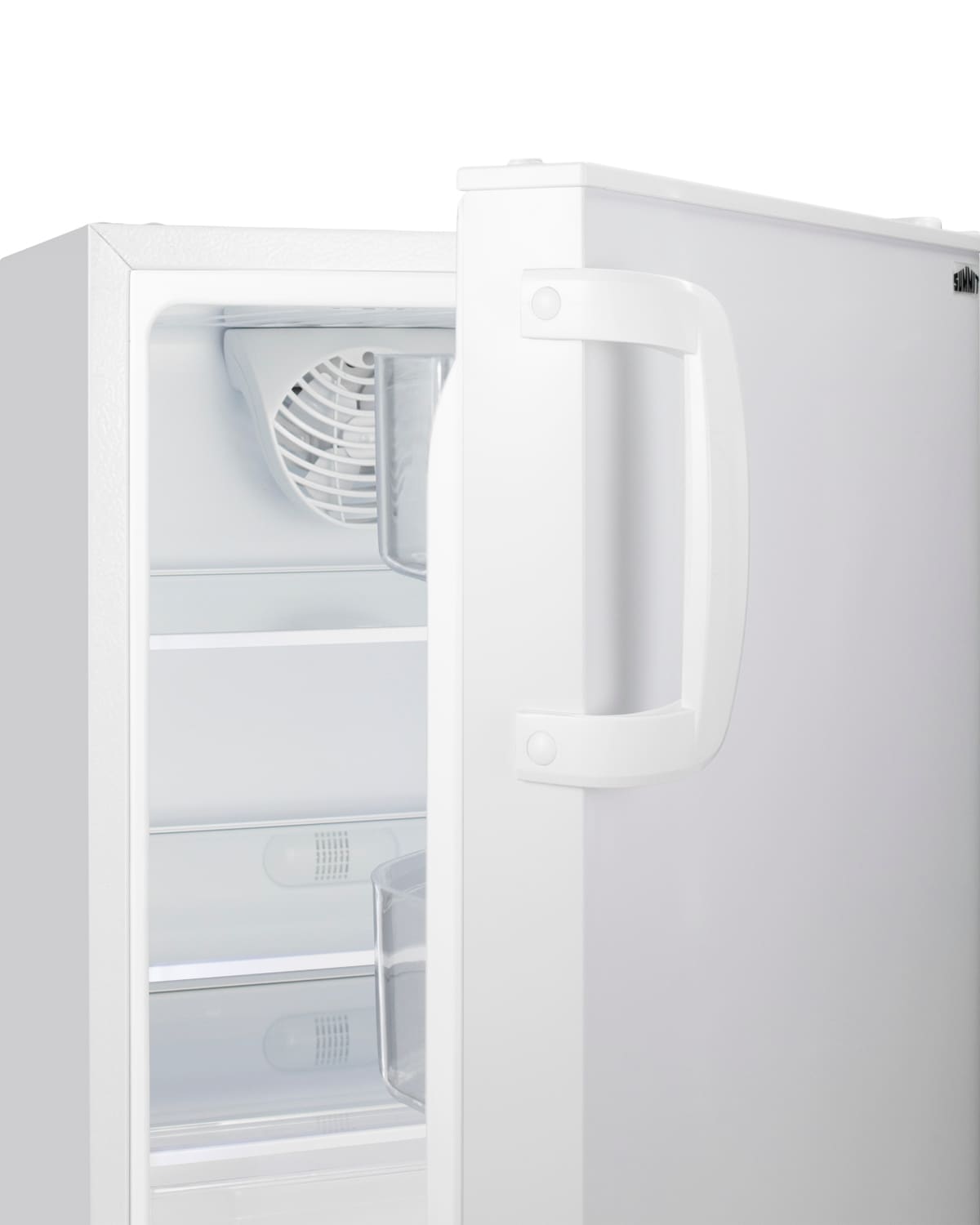 Summit Appliance offers a quality selection of 20″ wide built-in undercounter all-refrigerators designed for installation under lower ADA compliant counters, with advanced features for user convenience.The ALR46W is sized at 32″ high to fit under lower counters complying with ADA guidelines for accessibility. The fully finished textured white cabinet allows freestanding use, while the front-breathing system means this unit can be built-in with minimum clearance. The user-reversible door is 3″ thick for efficient insulation, with a handle included for added convenience. This unit comes with a right angle cord to allow for easier placement without added depth. A digital thermostat, located in the kickplate, makes for easy temperature management with a readout in Fahrenheit or Celsius. Inside, the ALR46W features an all-white interior for easy cleaning and viewing of contents. An LED light located toward the front of the unit attractively illuminates the interior when the door opens. Automatic defrost operation ensures minimal user maintenance, with an internal fan to help ensure even cooling throughout the 3.53 cu.ft. interior. Three adjustable glass shelves offer optimal storage options for large and small items, while a pull-out crisper drawer provides storage for fruits and vegetables. Three removable door racks accommodate additional storage as needed. The user-set high and low-temperature alarms provide added security should the temperature go beyond the setpoint, while the open door alarm sounds if the door is ajar over one minute for added peace-of-mind. These alarms can be disabled depending on your needs. Sized at just 20″ wide, the ALR46W is the perfect addition for space-challenged environments seeking dependable freezer options in a durable design.