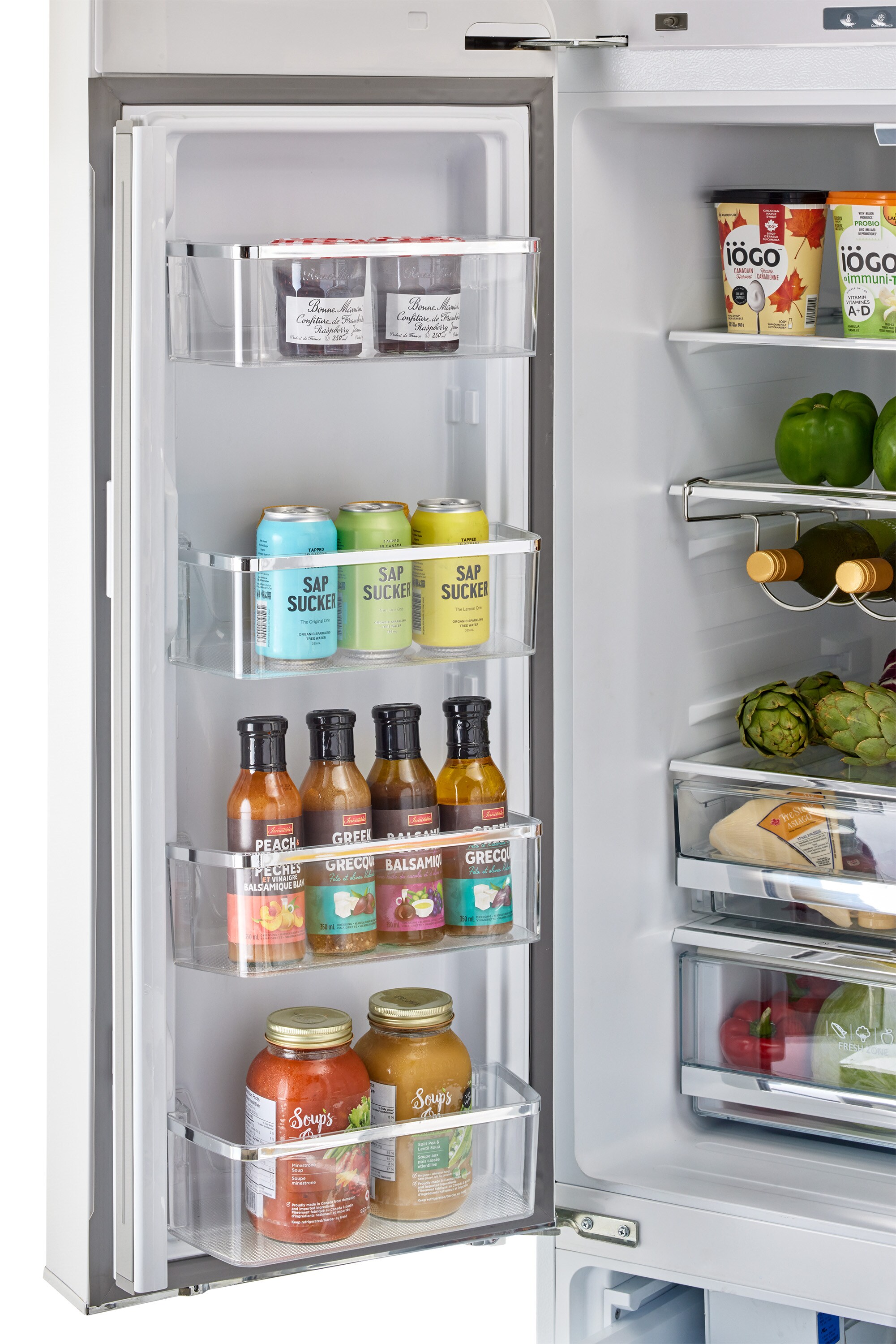 The 21.4 cu. ft. French door refrigerator, a stylish and energy-efficient addition to your kitchen. This refrigerator not only boasts a generous storage capacity but is also Energy Star certified. Say goodbye to tedious defrosting with its frost-free design, allowing you to enjoy a hassle-free experience while maintaining the freshness of your groceries. The family-sized design prioritizes convenience with adjustable shelves and ample door storage, accommodating the diverse needs of a busy household.