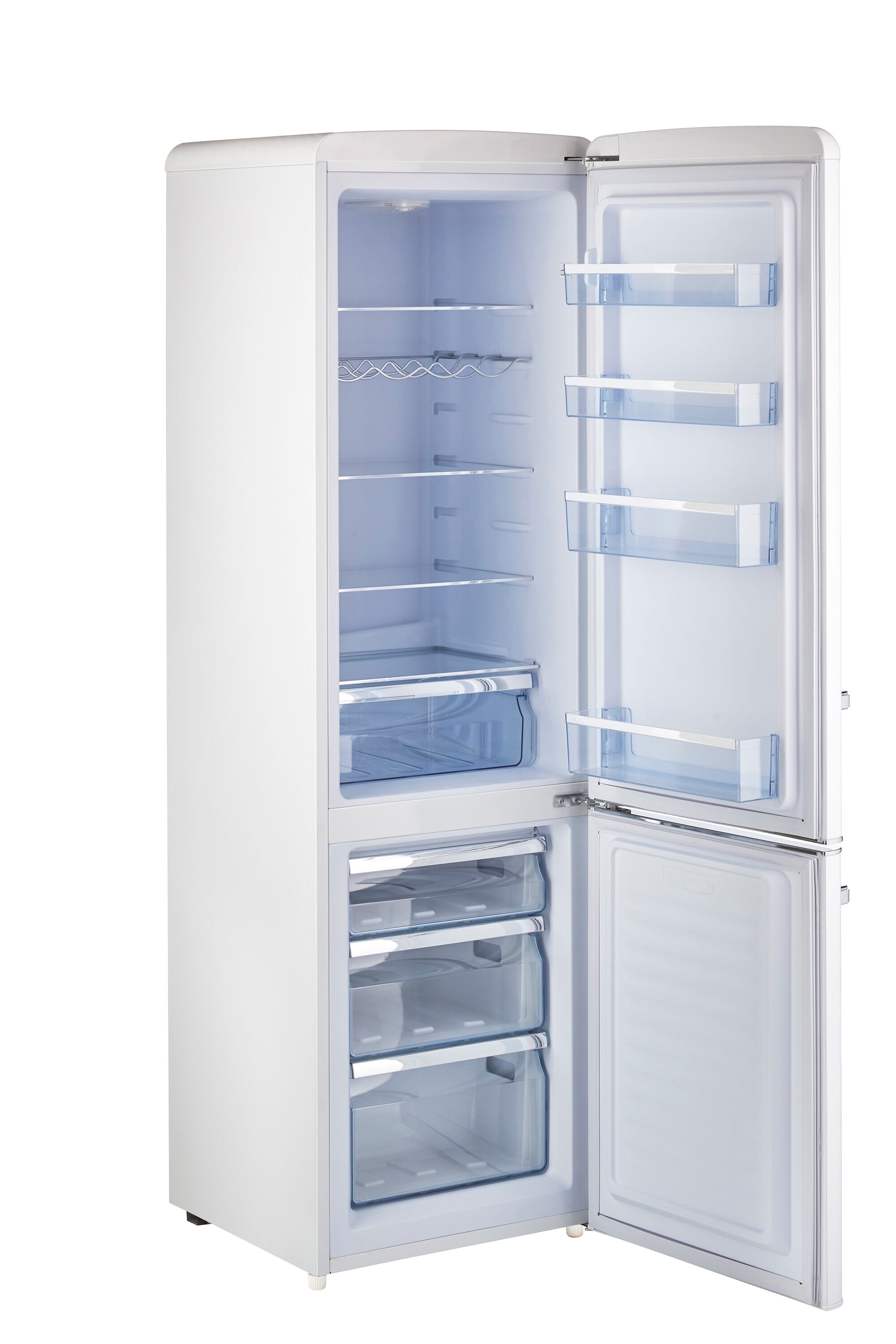 The Unique retro bottom mount fridge blends classic vintage design with modern performance for optimal energy savings and easy, dependable use. This stylish retro fridge boasts the world’s most reliable compact cooling system (Se cop compressor), efficient insulation throughout and simple effortless controls. With 3 convenient freezer drawers and removable shelves, there is no more digging around for food. Solar refrigerators have never looked so good or been easier to use. Be a green leader.