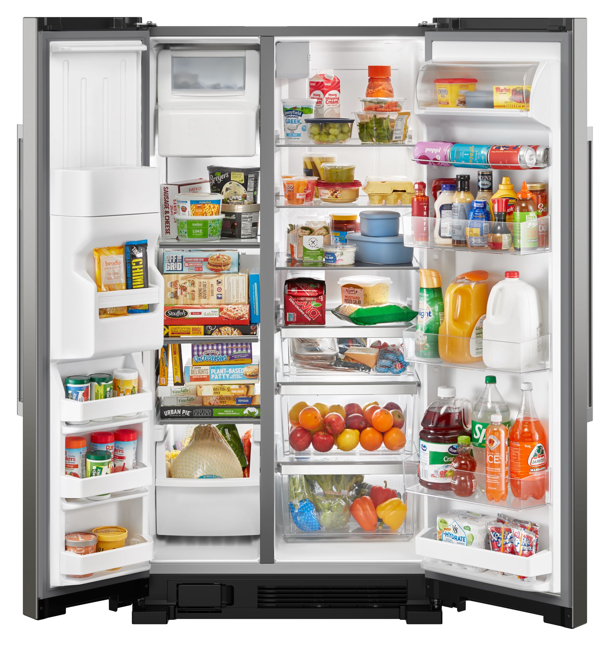 Fit and find it all with purposefully-designed storage spaces in this side-by-side refrigerator. Get increased loading flexibility when and where you need it using adjustable gallon door bins. The refrigerator with LED lights also keep food looking as good as it tastes.