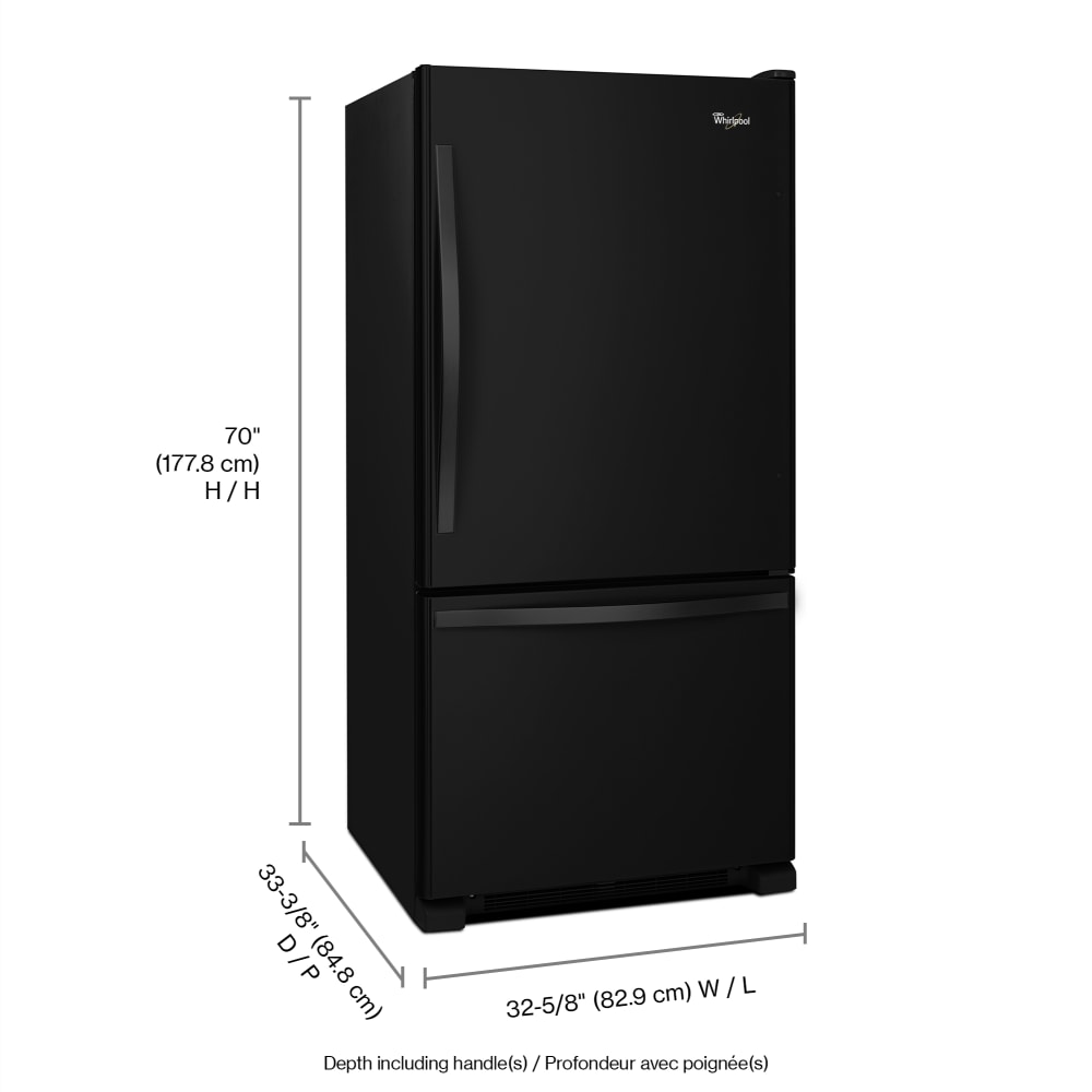 Whirlpool 22.07-cu ft Standard-Depth Bottom-Freezer Refrigerator with Ice Maker ( Black ) ENERGY STAR Certified