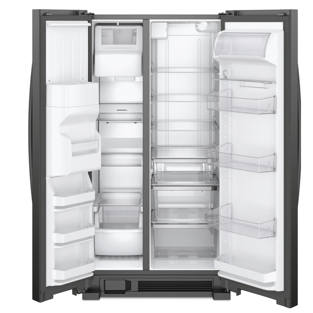 Equipping your kitchen with a refrigerator that meets your needs is a game changer. This 21.4 cu ft side-by-side refrigerator from Whirlpool is designed with storage spaces for items your family uses the most, and clever features, like the in-door caddy for canned beverages and bottles. Good to know: Whirlpool® refrigerators have the lowest repair rate among side by side refrigerators. (*Claim compares Whirlpool branded refrigerators to GE, Frigidaire, Samsung and LG.Based on service required data, Q2 2022-Q2 2023, Traqline – The Stevenson Company, 2023.)