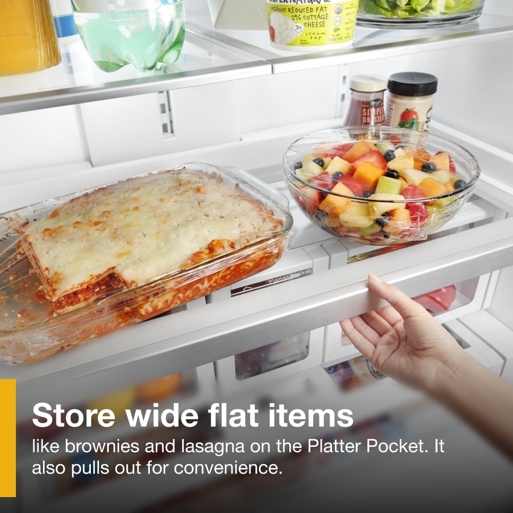 Store wide, flat items like brownie pans, lasagna, and more on the Platter Pocket (it pulls out to make items easy to get)