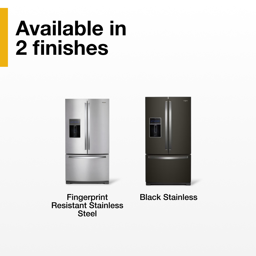 More room for your most loved foods, beverages, and double the ice-making capacity. This family-friendly 26.8 cu ft French Door refrigerator from Whirlpool® has dual ice makers and is thoughtfully designed with purposeful storage features to make things easy to fit and find. ENERGY STAR certified.