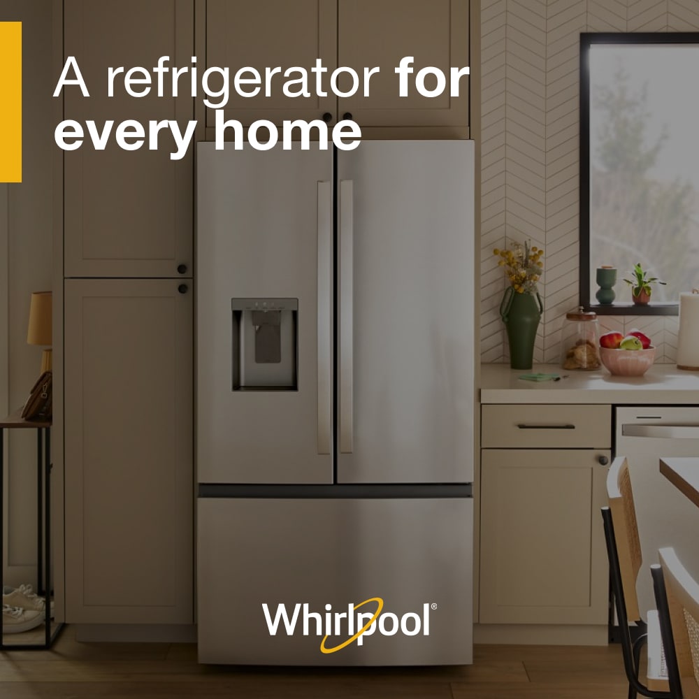Get family-sized capacity, ice and flexible organization to keep up with whatever the day brings. This Whirlpool® French Door Refrigerator makes over 3 lbs of ice every day. Fill up quick with the In-Door Filtered Water Dispenser & Ice Maker. Pint-Size Storage provides easy access to small items. And enjoy flexible storage with half and full Adjustable Glass Shelves. ENERGY STAR® certified.