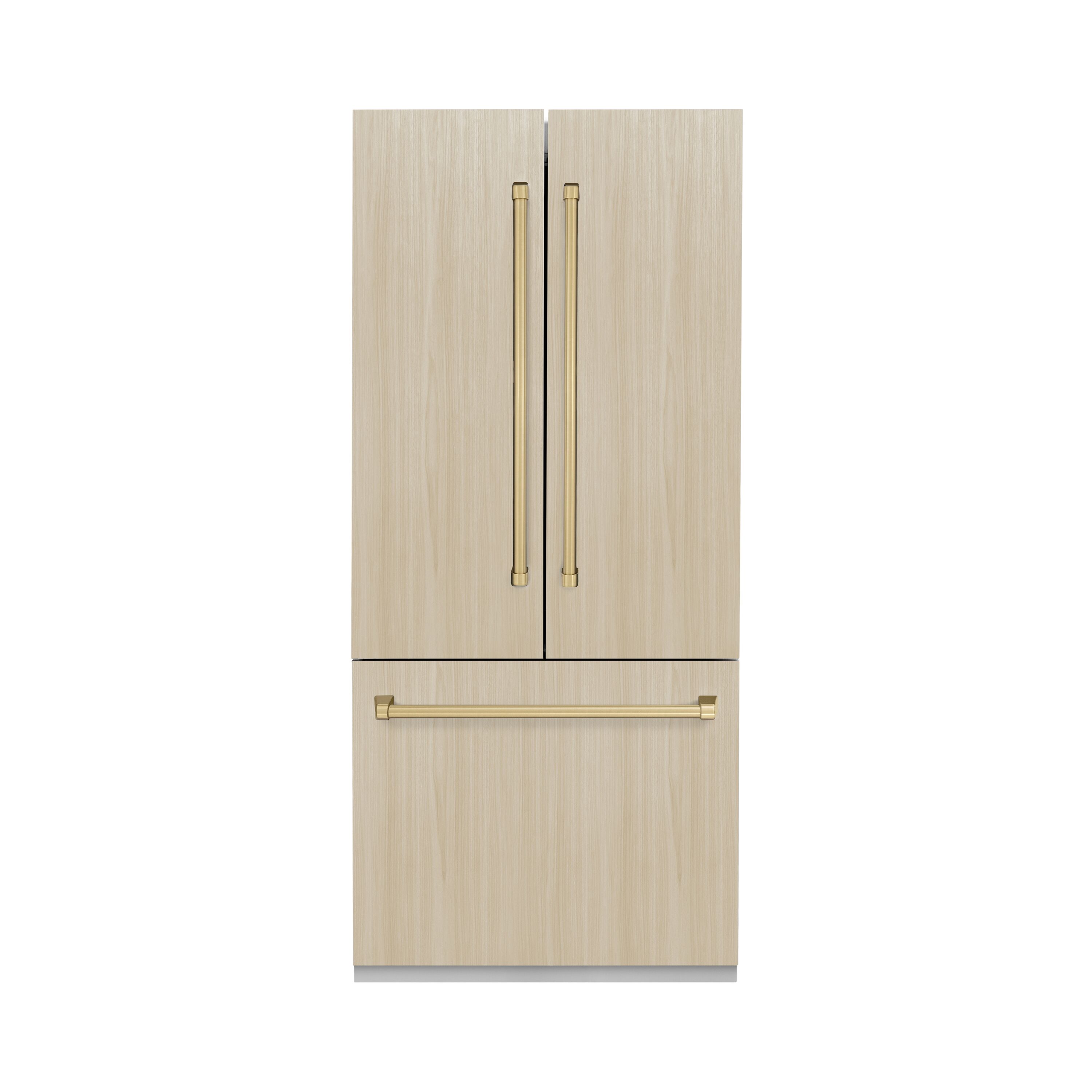 Luxury isn’t meant to be desired – it’s meant to be attainable. The ZLINE Autograph Edition 36 in. 19.6 cu. ft. Panel Ready French Door Built-In Bottom Freezer Refrigerator with Water Dispenser and Ice Maker with Champagne Bronze Accents (RBIVZ-36-CB) provides the ultimate upgrade to the center of your home by pairing premium dual cooling technology with enhanced storage capacity for multiple grocery items. Achieve ZLINE Attainable Luxury® excellence with innovative features designed to enhance your kitchen’s cooling and freezing capability.