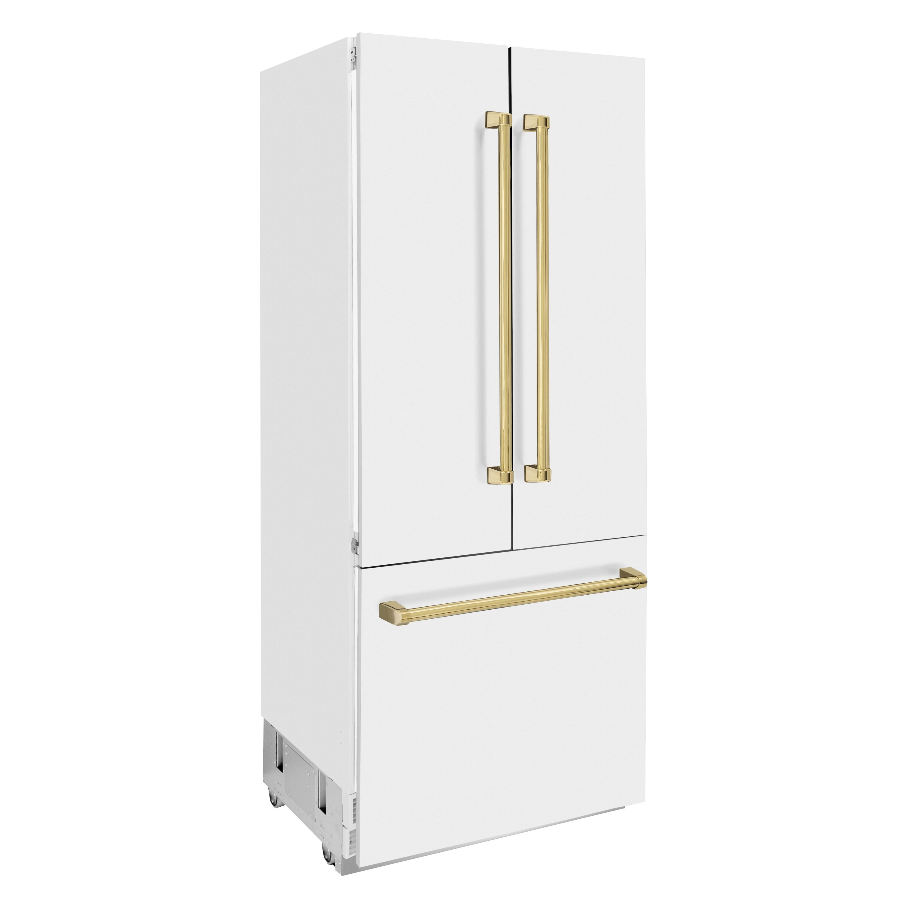 ZLINE KITCHEN & BATH Counter-Depth 19.6-cu ft 3 -Door Built-In French Door Refrigerator with Ice Maker with Water Dispenser ( Stainless Steel with a White Matte door and Polished Gold Handle ) ENERGY STAR Certified