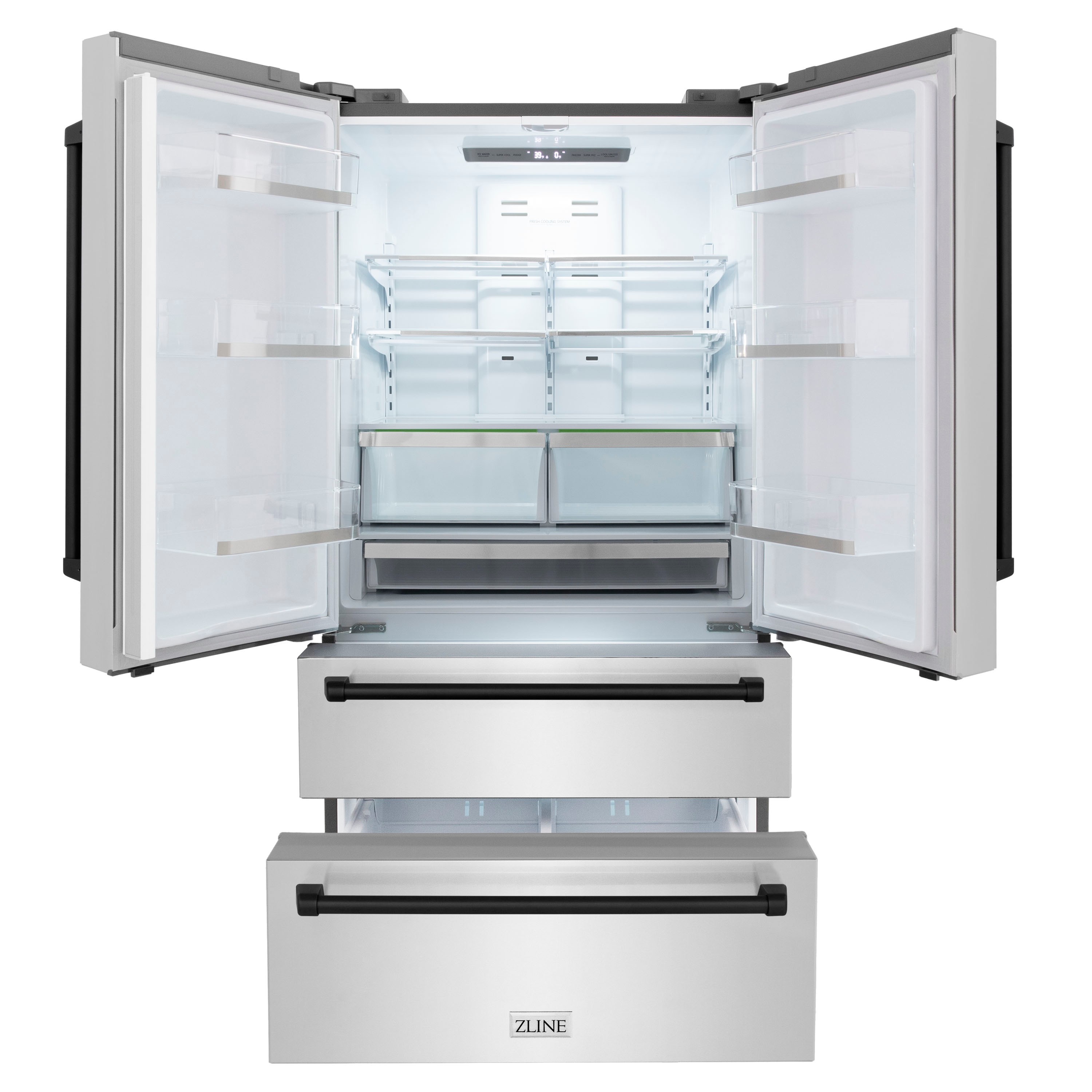 ZLINE KITCHEN & BATH Counter-Depth 22.5-cu ft 4 -Door French Door Refrigerator with Ice Maker ( Fingerprint Resistant Stainless Steel with Matte Black accent Handles ) ENERGY STAR Certified