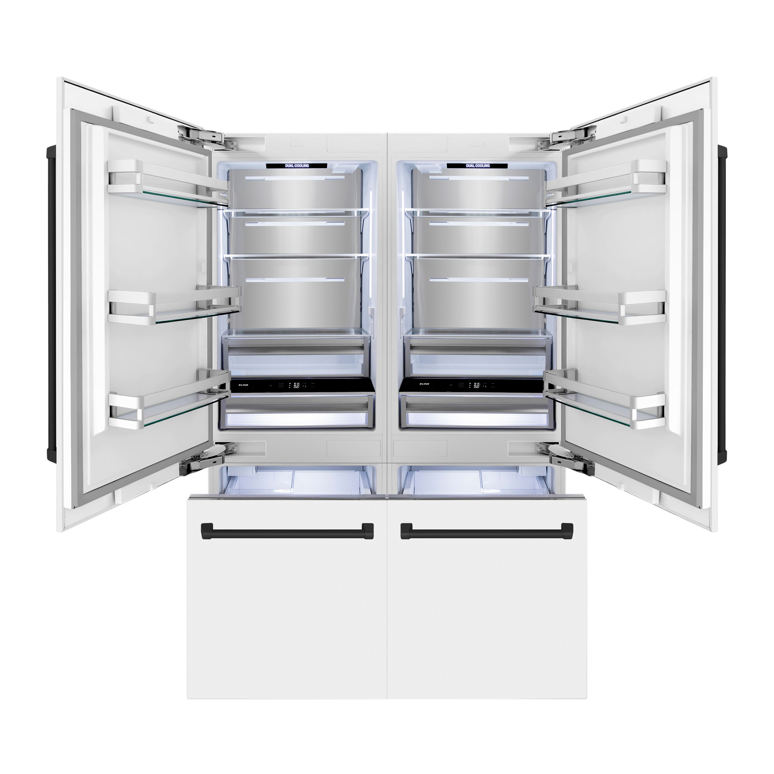 ZLINE KITCHEN & BATH Counter-Depth 32.2-cu ft 4 -Door Built-In French Door Refrigerator with Ice Maker with Water Dispenser ( Stainless Steel with White Matte Panels and Matte Black accent Handles ) ENERGY STAR Certified