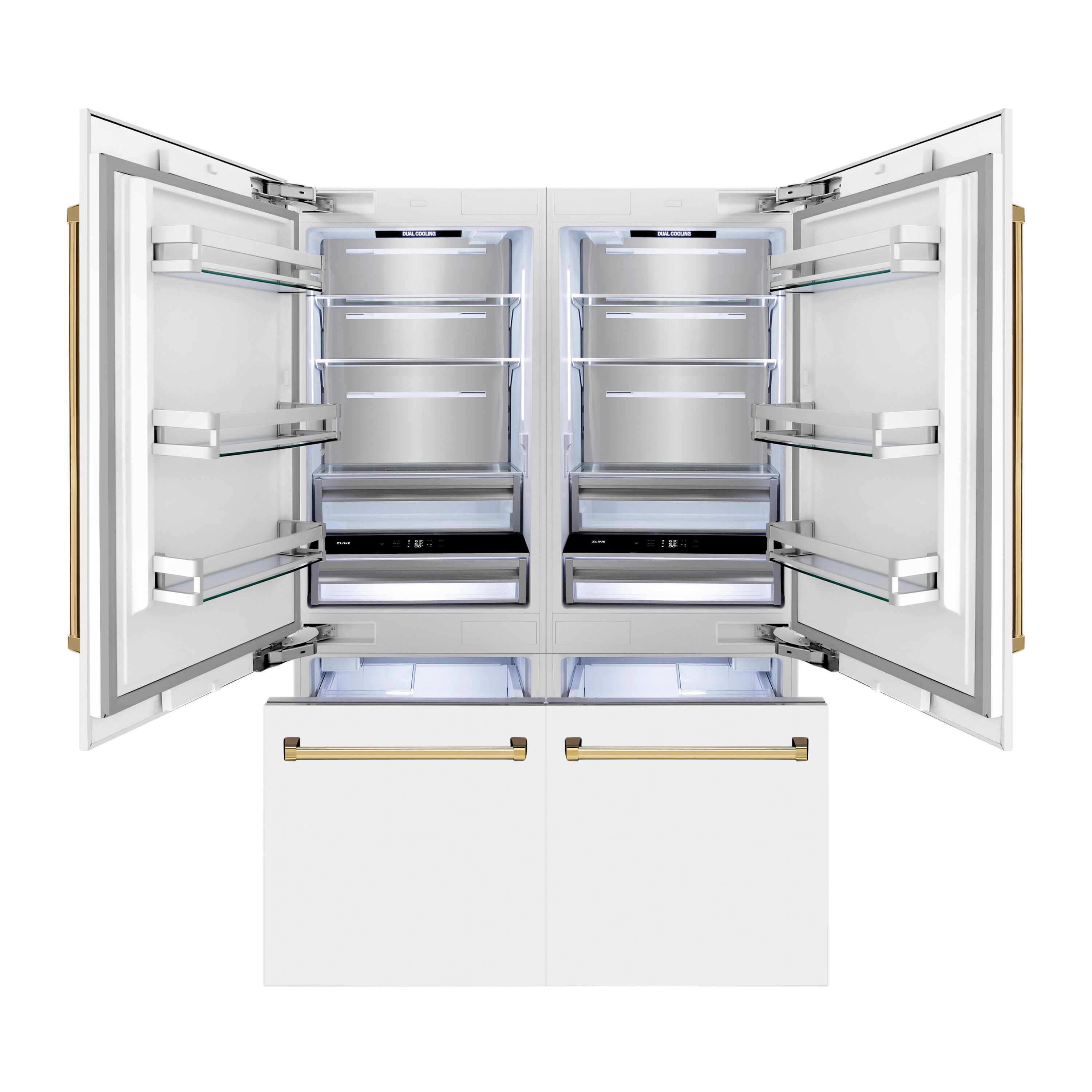 ZLINE KITCHEN & BATH Counter-Depth 32.2-cu ft 4 -Door Built-In French Door Refrigerator with Ice Maker with Water Dispenser ( Stainless Steel with White Matte Panels and Polished Gold Accent Handles ) ENERGY STAR Certified