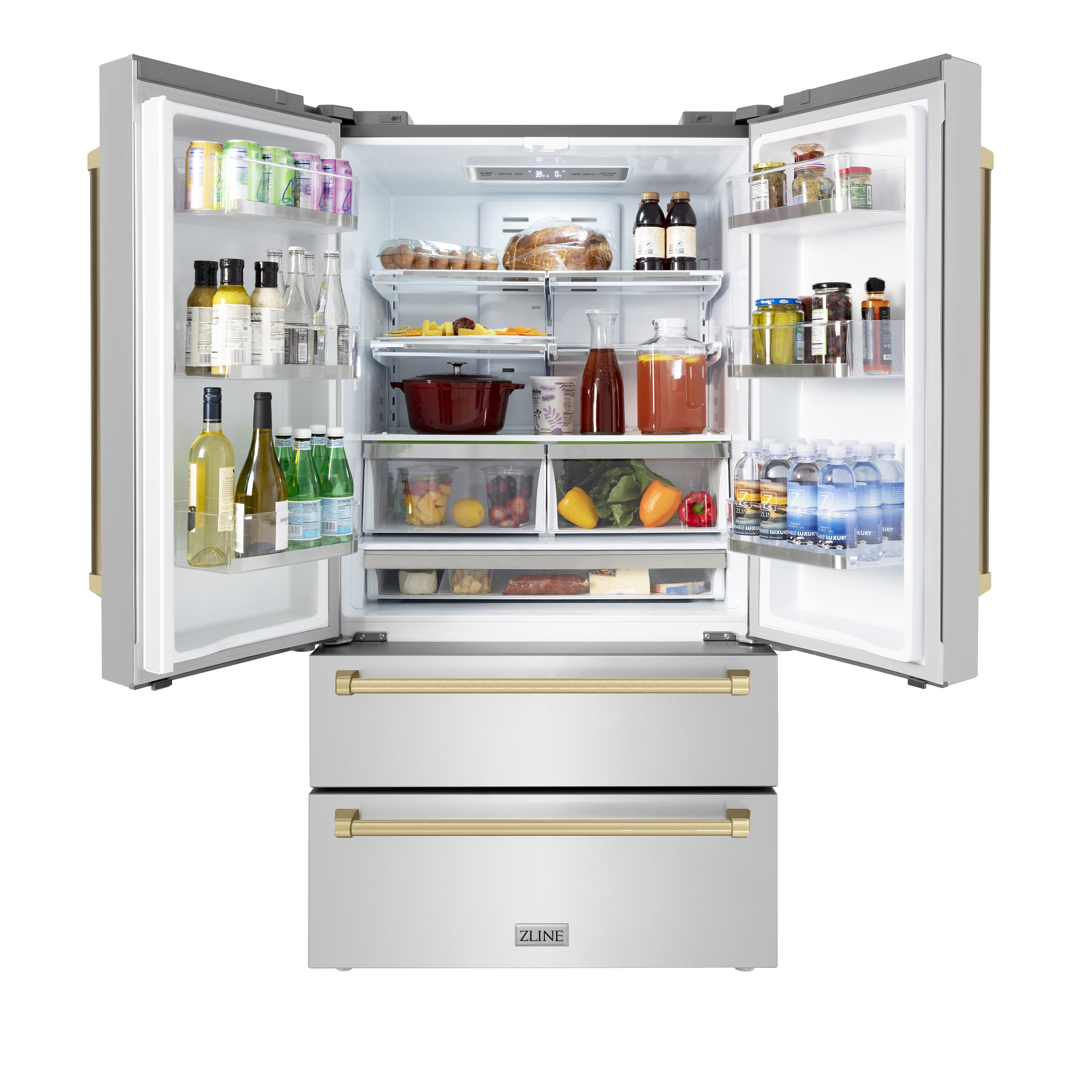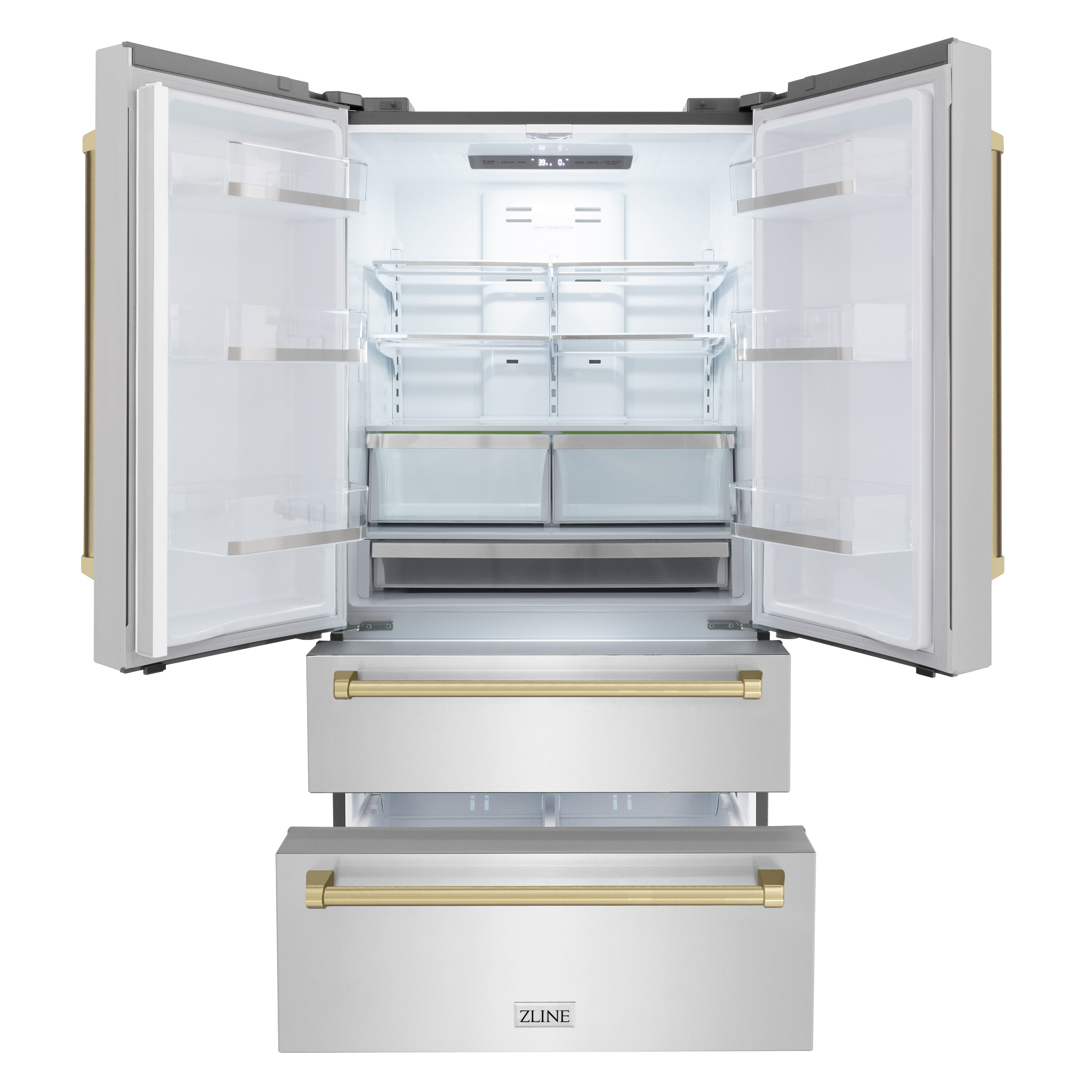 ZLINE KITCHEN & BATH Counter-Depth Autograph Edition 22.5-cu ft 4 -Door French Door Refrigerator with Ice Maker ( Fingerprint Resistant Stainless Steel with Champagne Bronze accent Handles ) ENERGY STAR Certified
